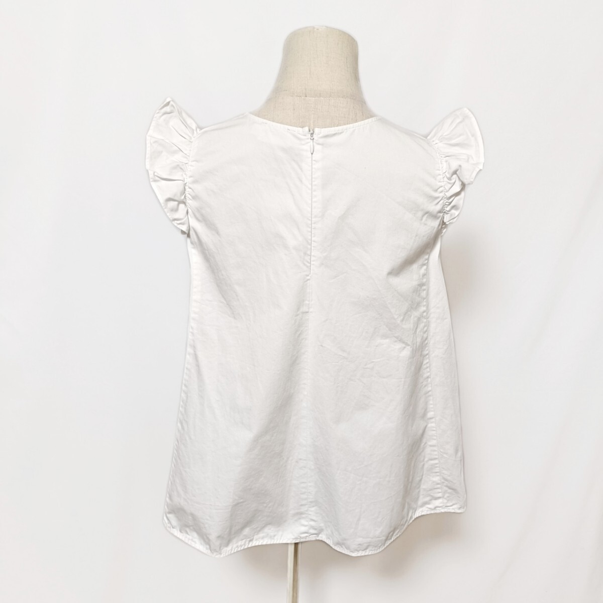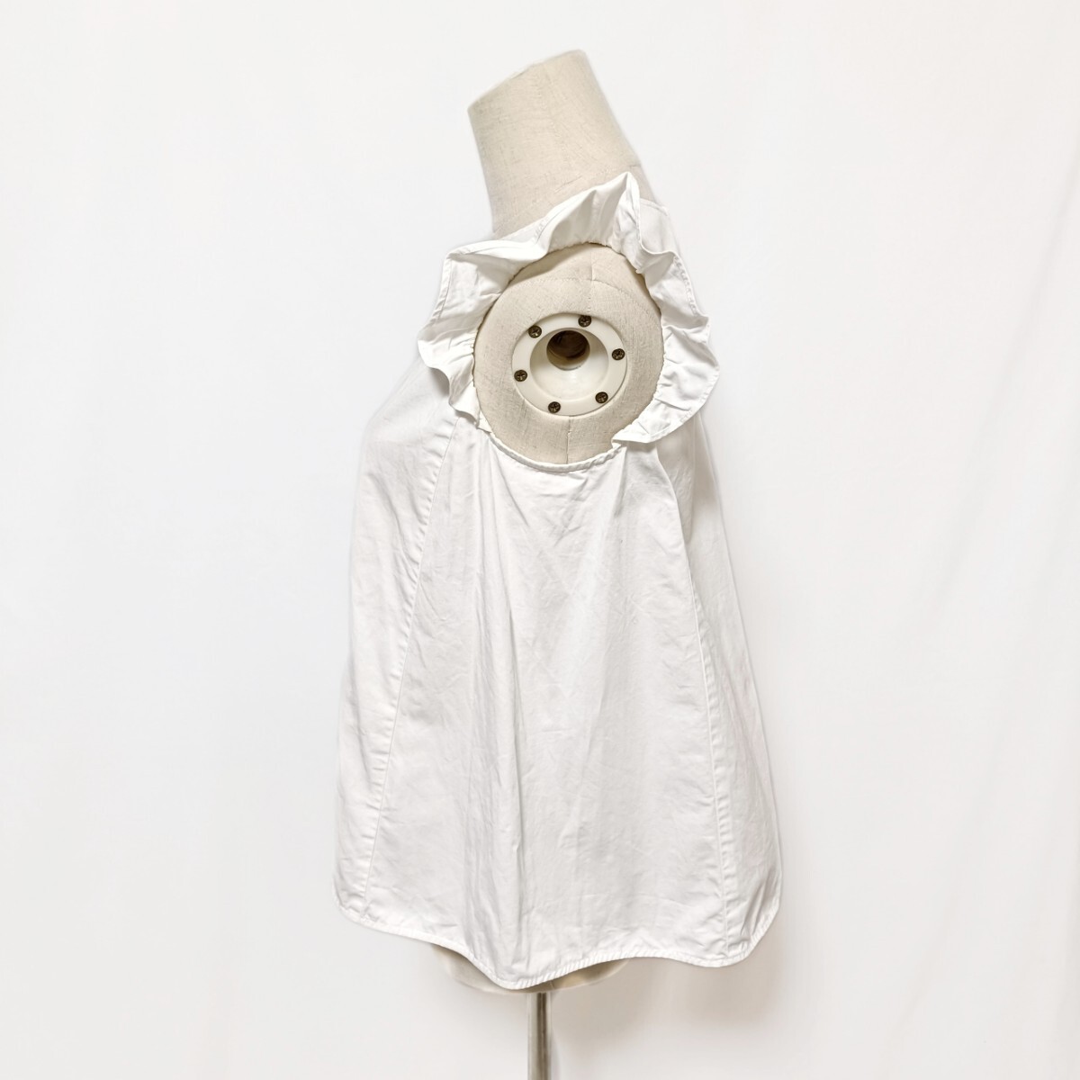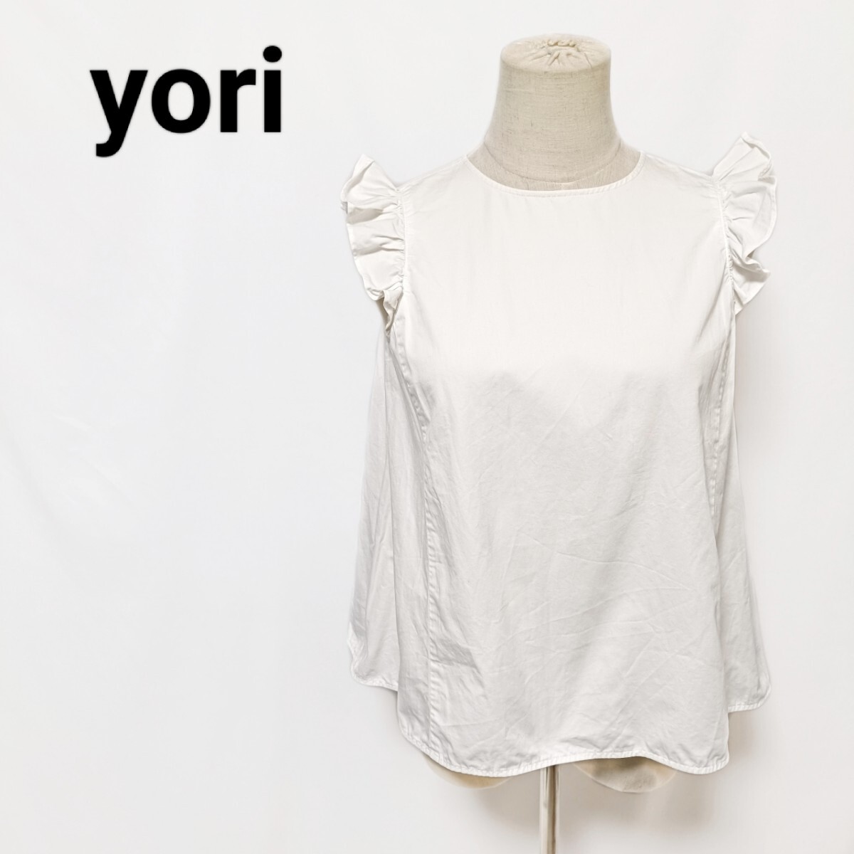 yori ヨリ フリルスリーブブラウス 36 S 白 ホワイト コットンリネン Aライン ノースリーブ YR1721-028SM バックジップ フリルショルダー