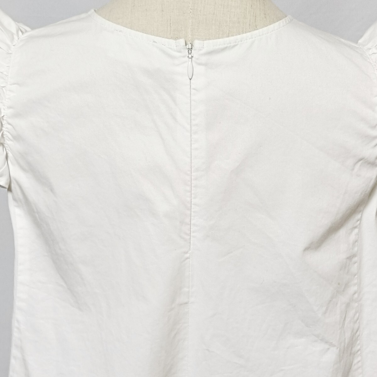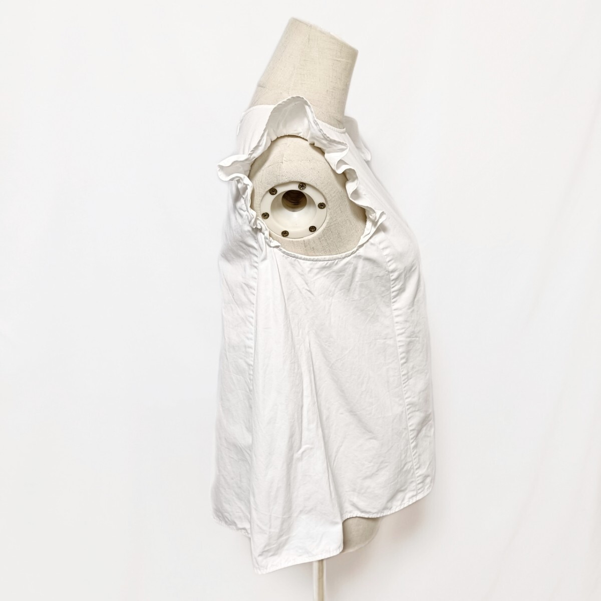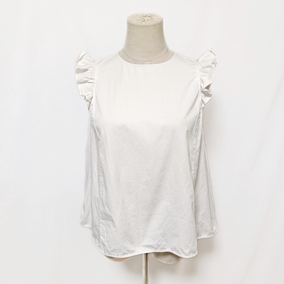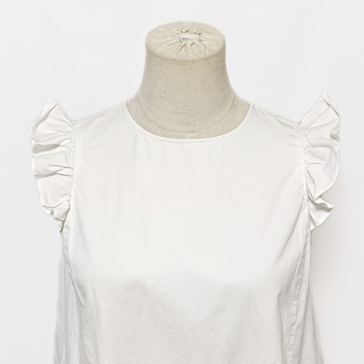 yori ヨリ フリルスリーブブラウス 36 S 白 ホワイト コットンリネン Aライン ノースリーブ YR1721-028SM バックジップ フリルショルダー