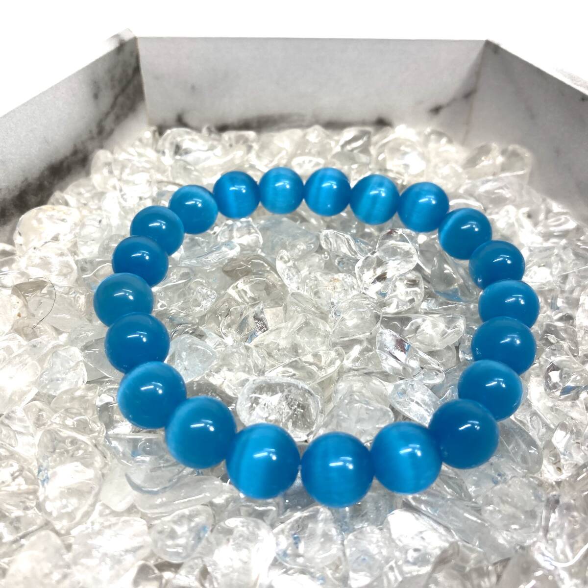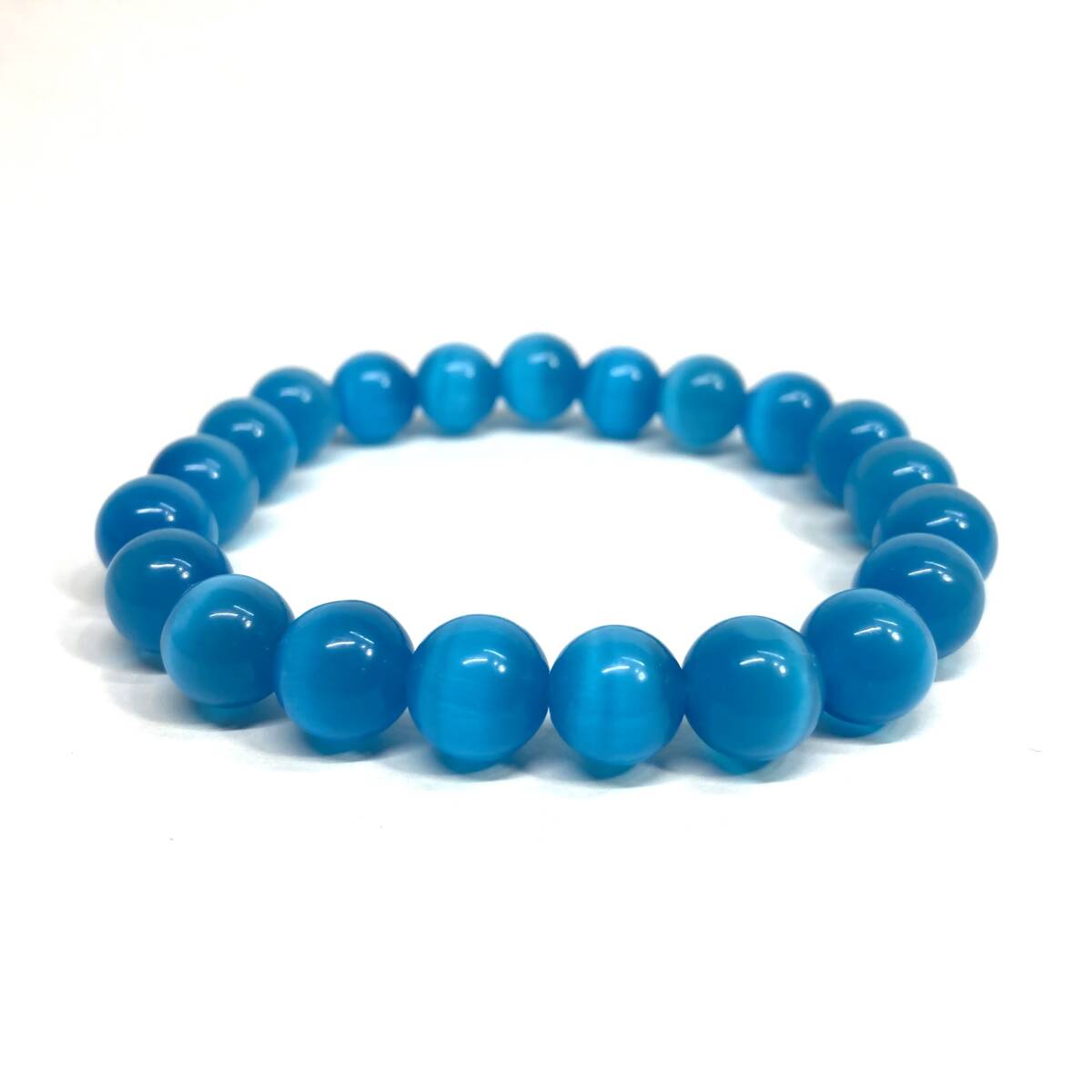 キャッツアイ(ライトブルー) パワーストーン ブレスレット 10mm (シンプル) 数珠ブレス メンズ・レディース 男性 女性 幸運 開運 浄化