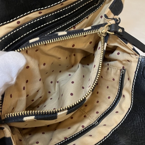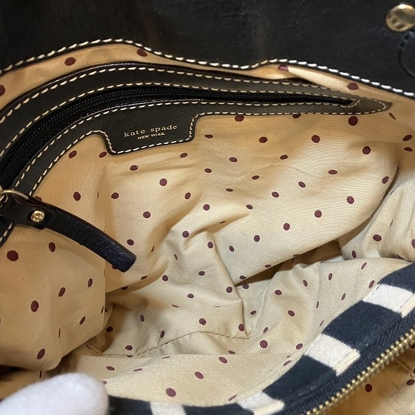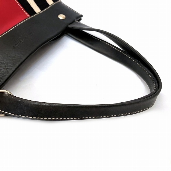 【ブランド】ケイト・スペード 【カラー】ブラック×レッド 【素材】レザー×綿 【仕様】外側:ポケットなし 内側:オープンポケット×2、ファスナー付ポケット×2 【サイズ】H約20.5cm×W約22cm×D約12.5cm 持ち手:約37cm 【付属品】なし 【ランク】B (使用感あり) 【状態】 持ち手:擦れ、汚れ、中程度有り 外側の状態:擦れ、角擦れ、汚れ、中程度有り 内側の状態:擦れ、汚れ、中程度有り 金具の状態:汚れ、小程度有り | |
