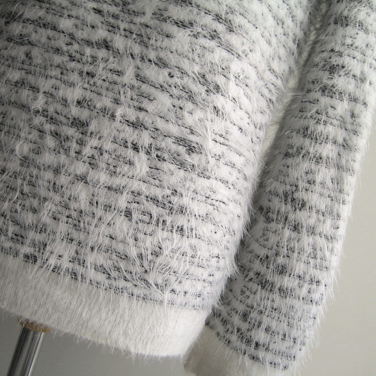 ■毛足の長いフェザーヤーンを使用したメランジ調のクルーネックニット