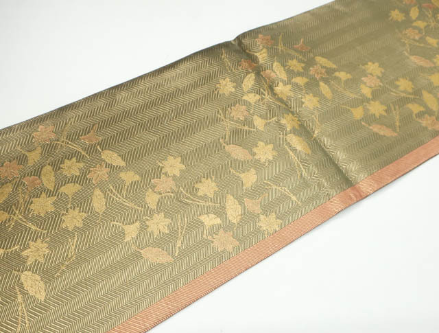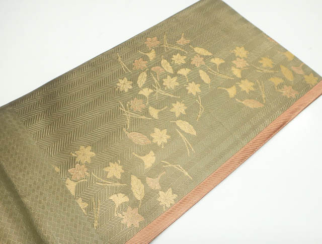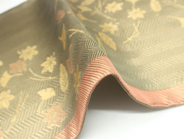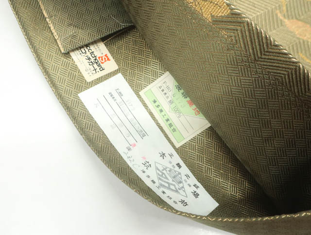 リサイクル商品ではございますが、大変良い状態のお品です。 垂れ中にタグ付きです。 地色は、金です。 1枚目の画像が近いお色かと思われます。 素材は正絹です。 |