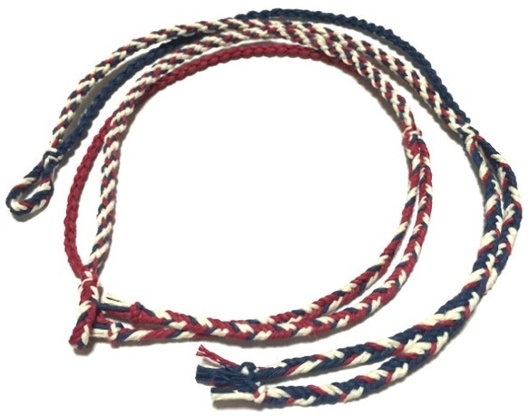 輪に分岐の1本を通し、もう一方と結んで留めるタイプです。