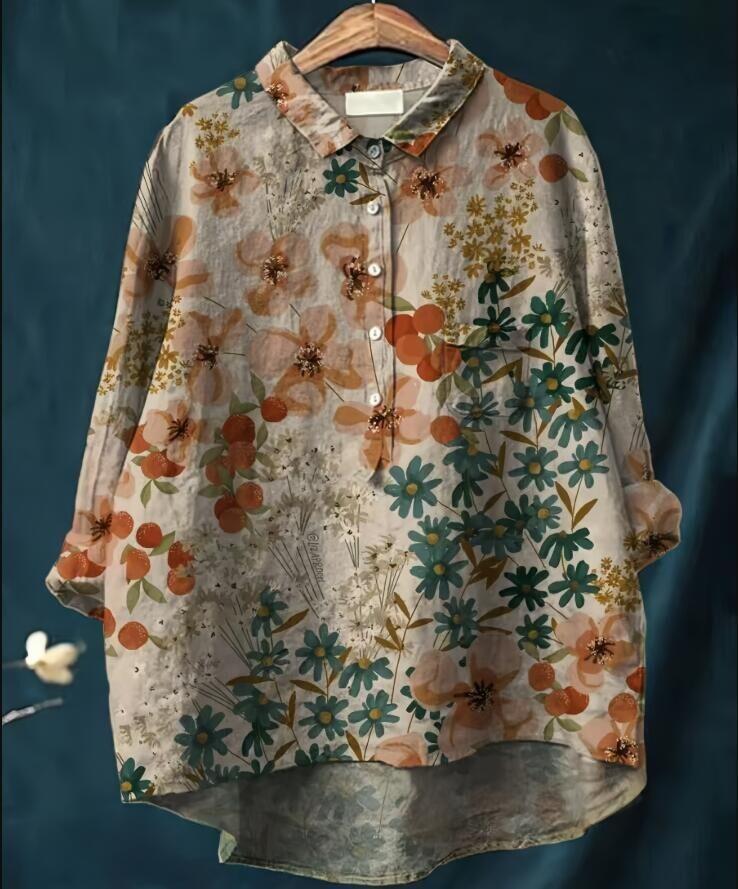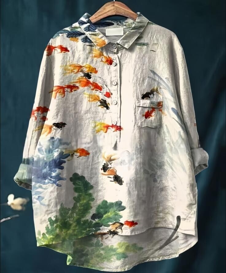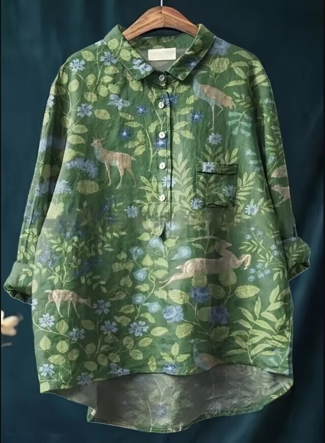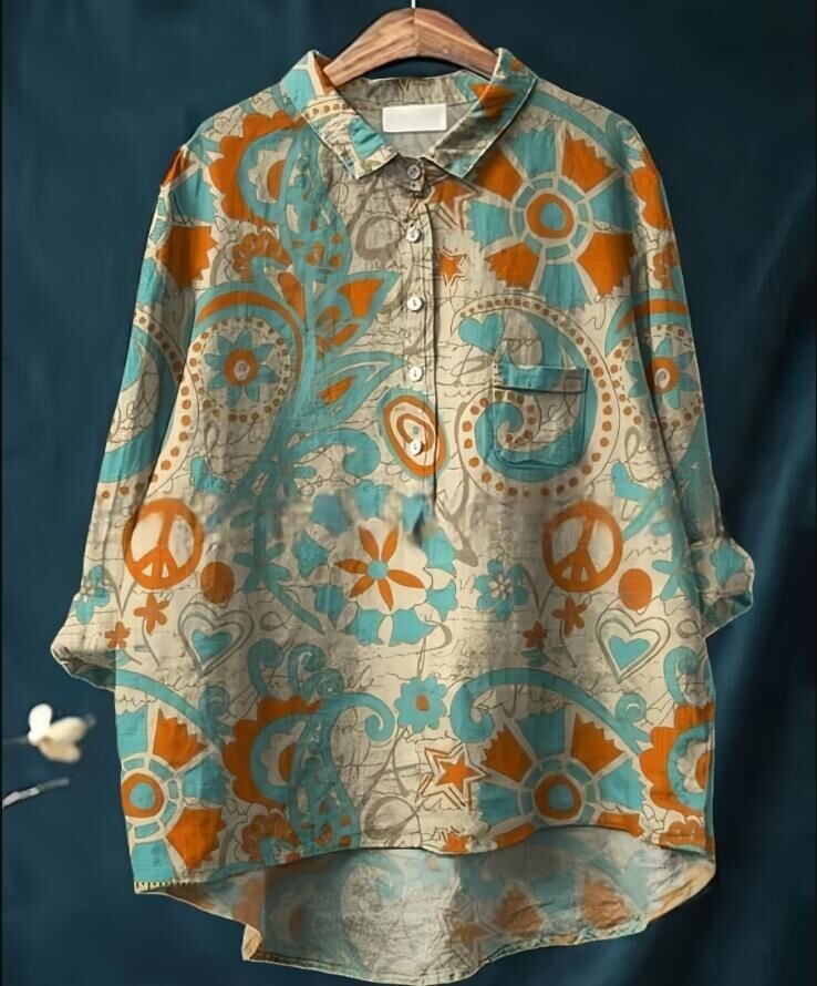 新品 秋 冬 オシャレ シャツ ブラウス 着痩せ チュニックシャツ プリント柄 トップス レディース 長袖 体型カバー05