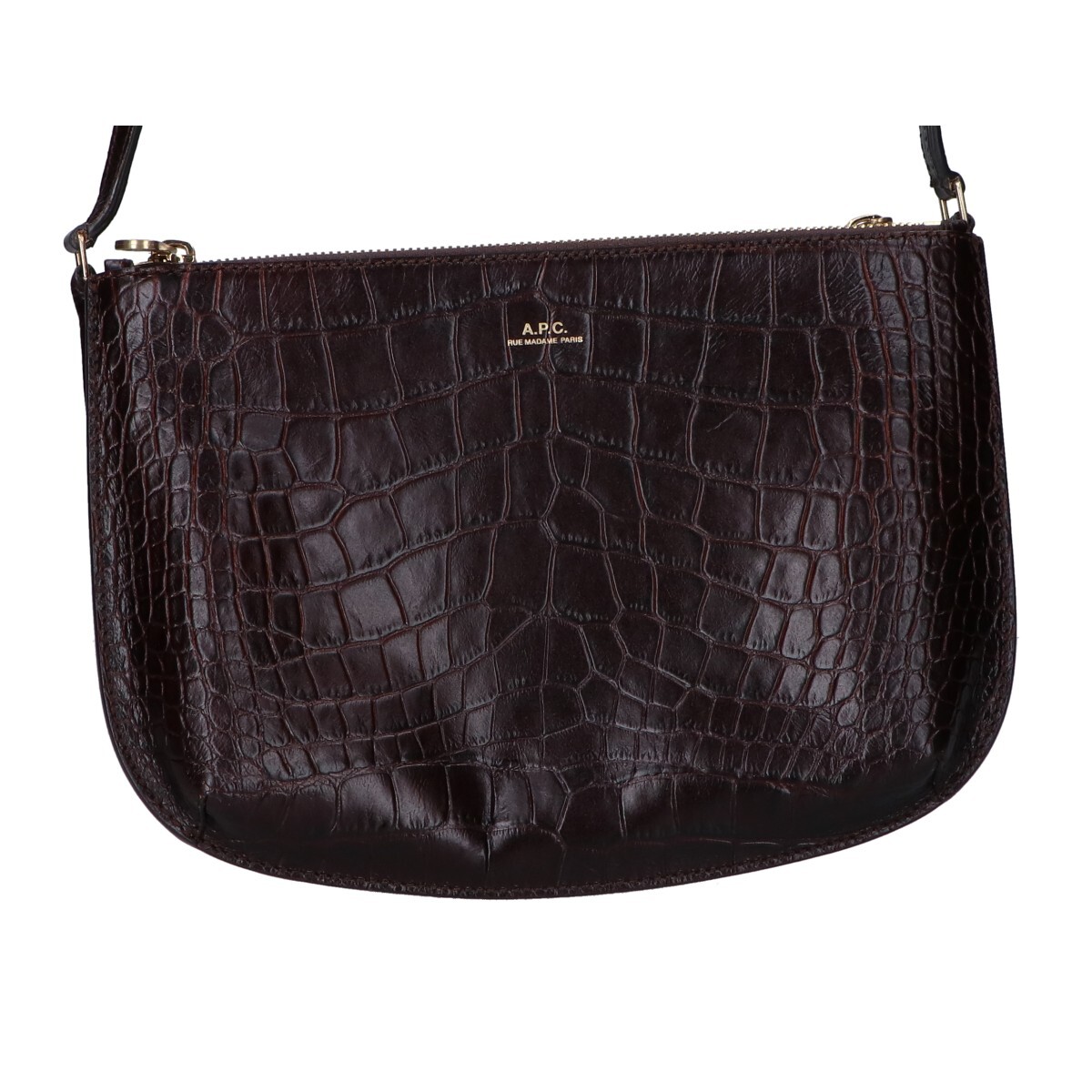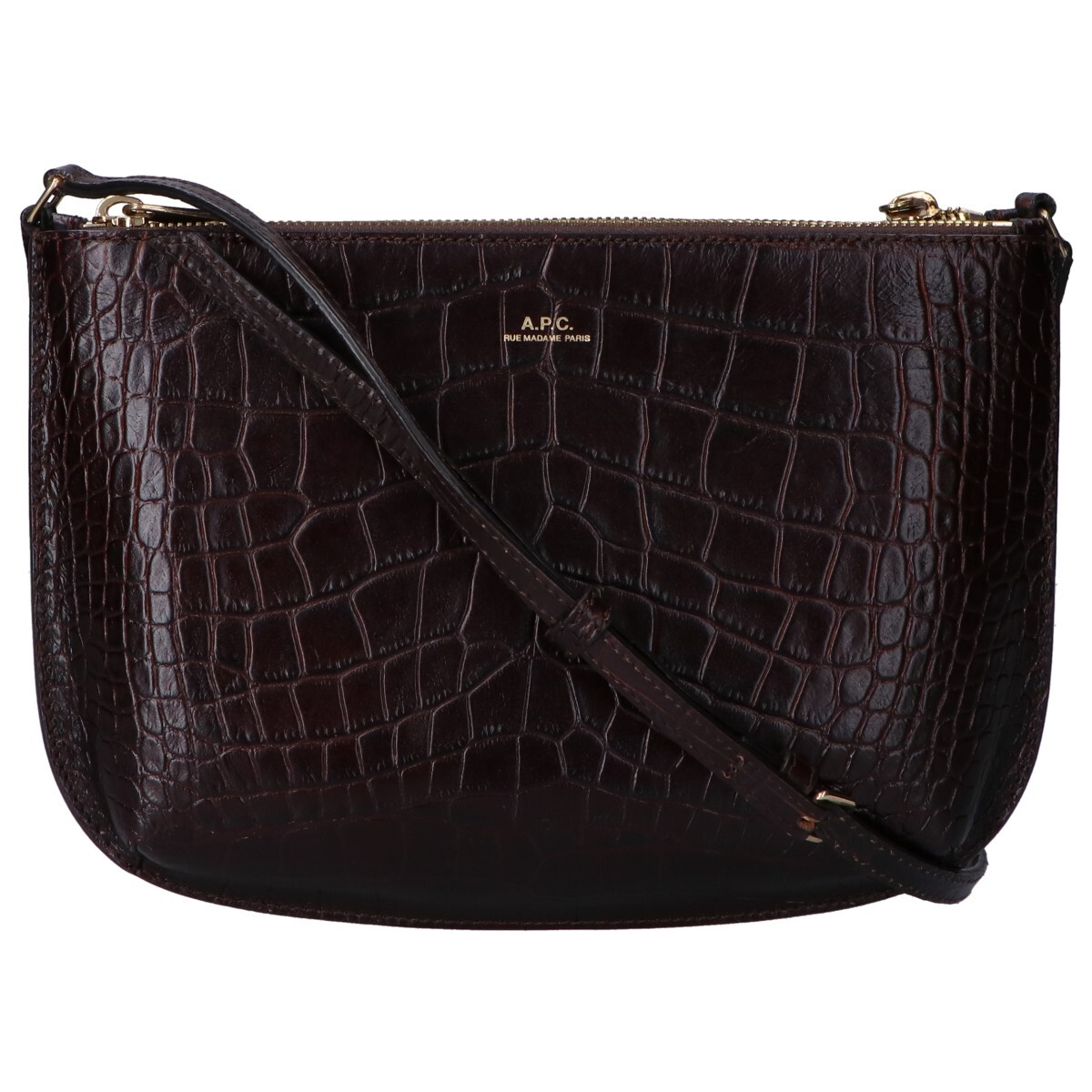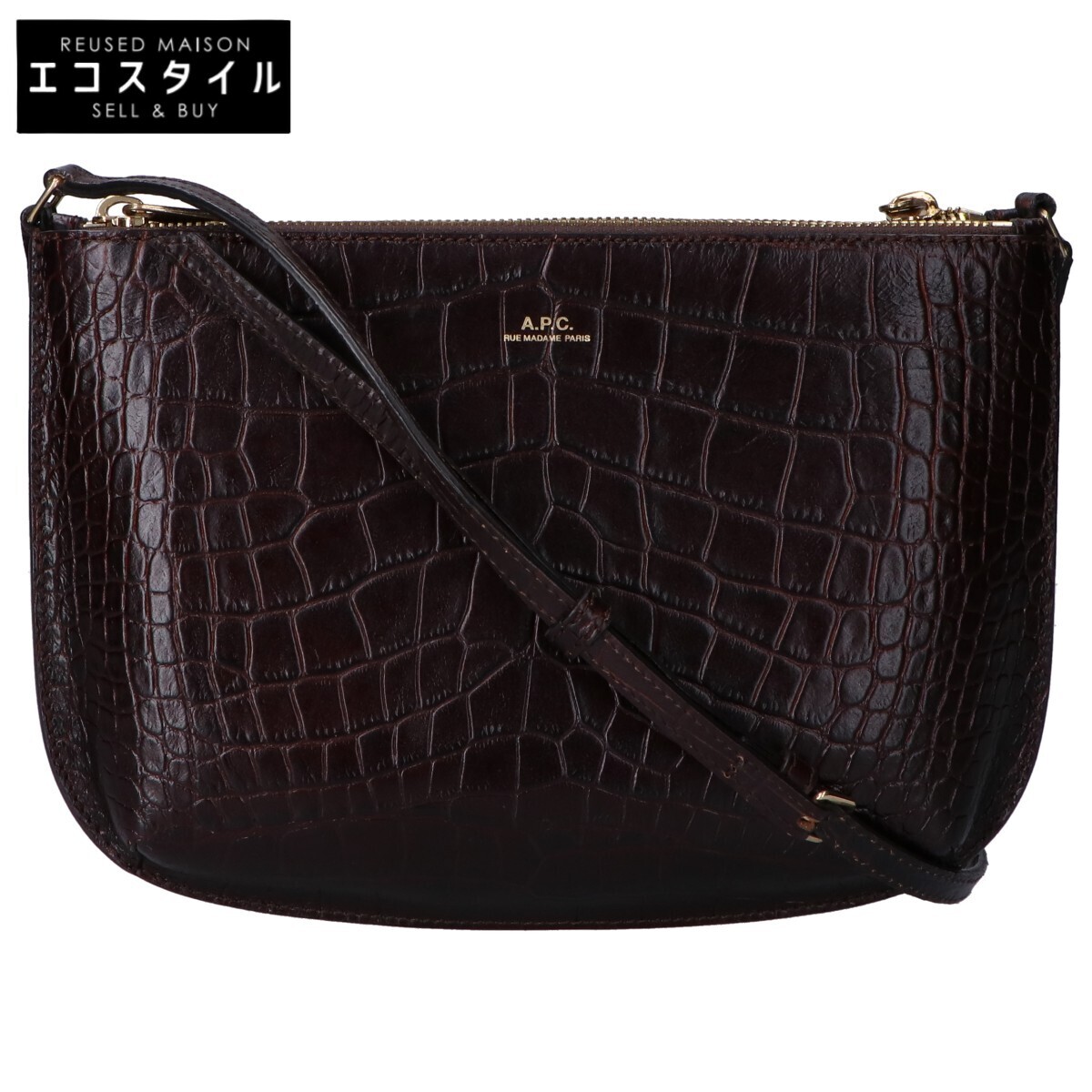 美品 A.P.C. アーペーセー SAC SARAH 型押しレザー ダブルファスナー ショルダーバッグ ダークブラウン レディース