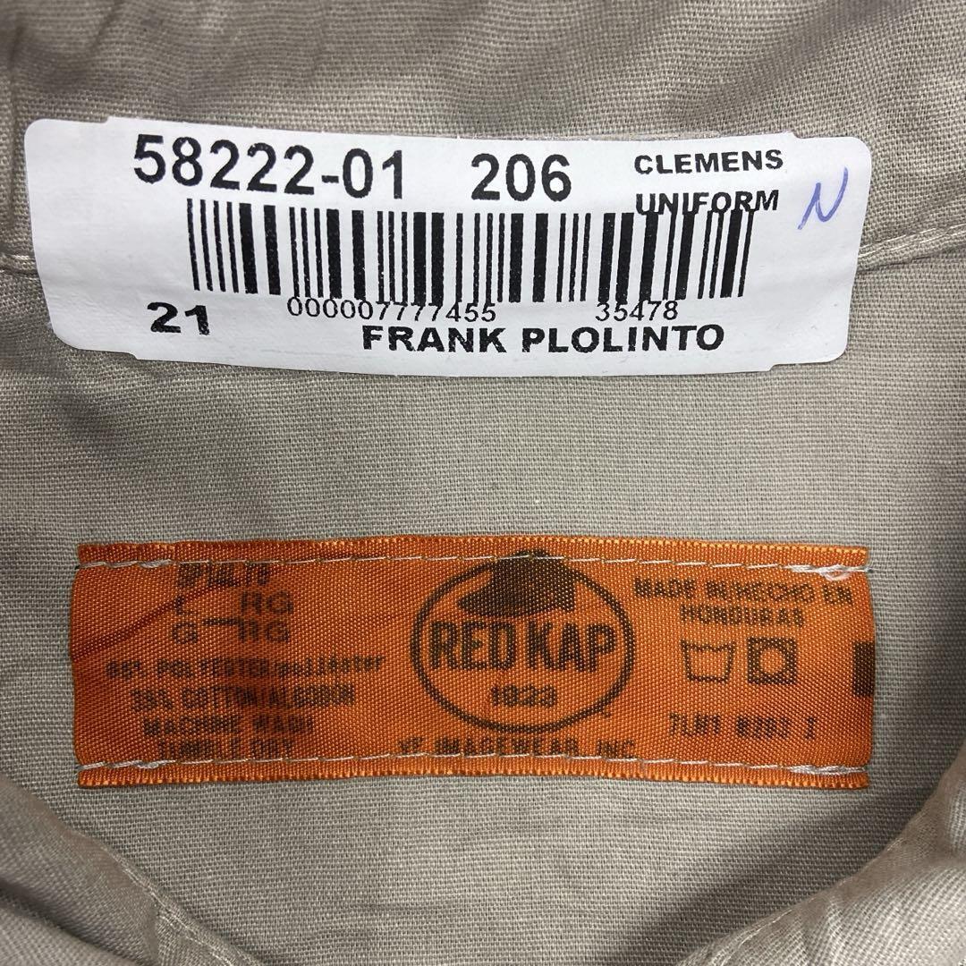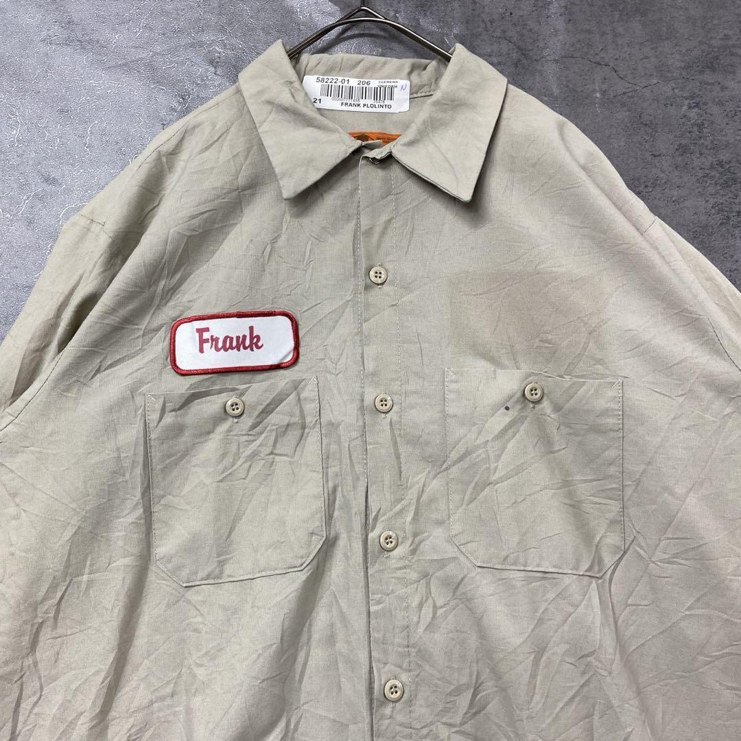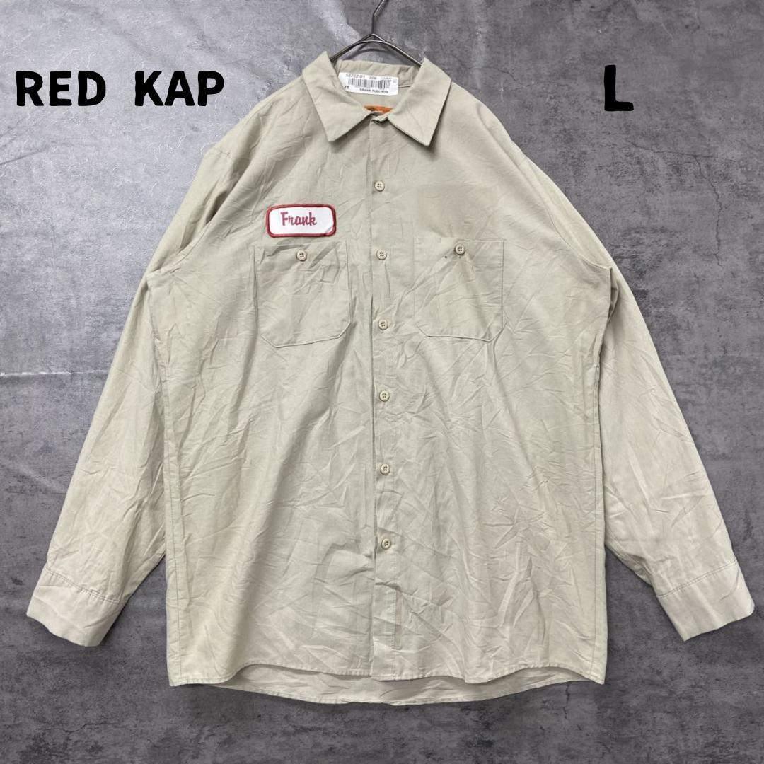 レッドキャップの長袖ワークシャツです。ベージュ系カラーで合わせやすく、胸にはネームワッペンが付いたアメリカらしいデザイン。ワークスタイルや古着コーデにおすすめの一枚です。全体的に使用感があり、シワや擦れが見られますので古着にご理解いただける方へ。