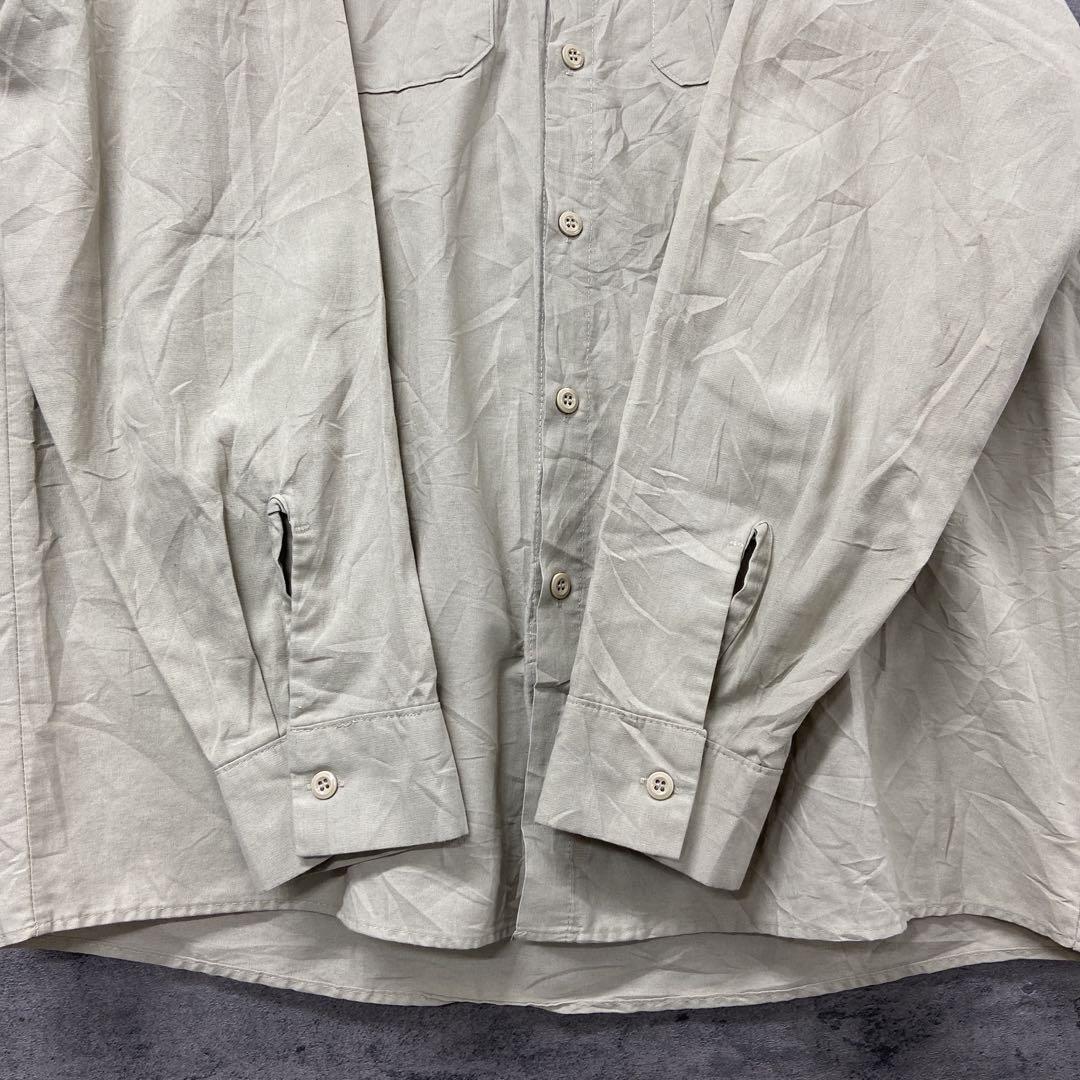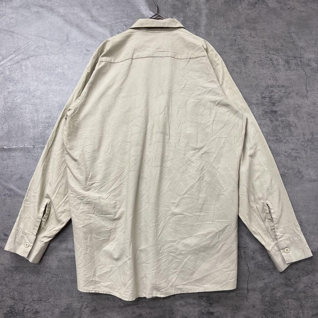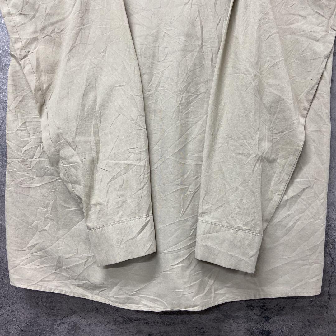レッドキャップの長袖ワークシャツです。ベージュ系カラーで合わせやすく、胸にはネームワッペンが付いたアメリカらしいデザイン。ワークスタイルや古着コーデにおすすめの一枚です。全体的に使用感があり、シワや擦れが見られますので古着にご理解いただける方へ。