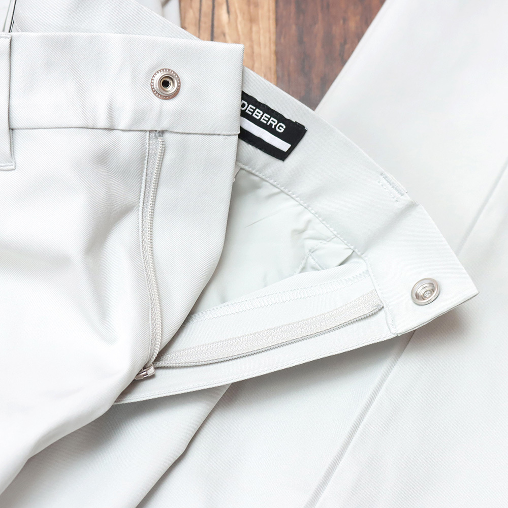エコテックス認証済、環境に配慮したPFCフリーのソフトツイルを使用したパンツ。さらりとなめらかで肌に優しい素材です。2wayストレッチが体の動きに合わせて伸縮するので、スイング中の動きを妨げません。防湿性と速乾性に優れた素材を使用しているため、どんなアクティビティや天候にも対応します。5ポケットデザインで、小物をたっぷり収納できます。春から秋にかけてのゴルフプレーにはもちろん、街穿きにも大活躍してくれるパンツです。