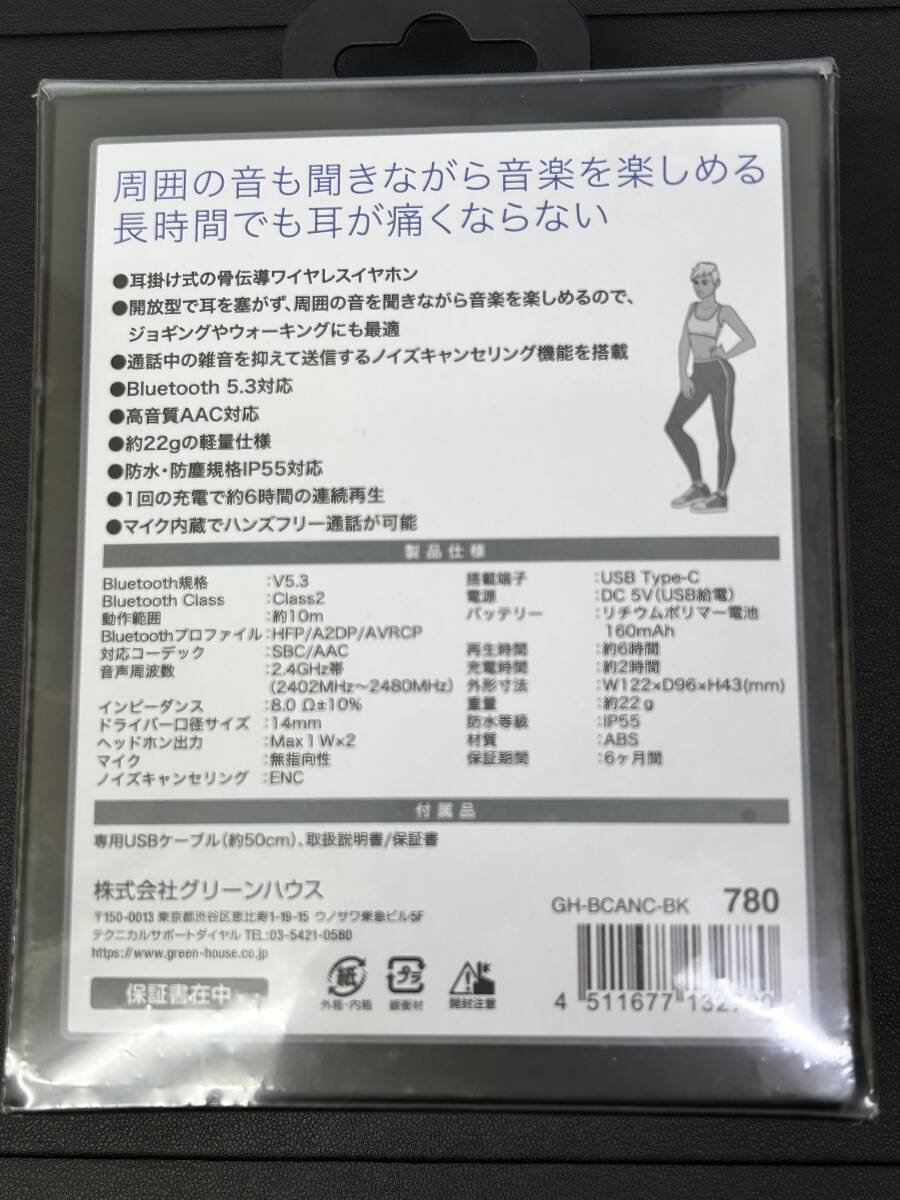 ※以下商品説明、注意事項を必ず読みご理解をされたうえ、ご入札をお願いいたします。 ご覧いただき誠にありがとうございます。 【商品名】 骨伝導ワイヤレスイヤホン GH-BCANC-BK ブラック ブランド:GREEN HOUSE(パソコン) 装着方式:両耳、左右一体型 イヤホン、ヘッドホンタイプ:ネックバンド型 構造:骨伝導 色:ブラック系 ワイヤレス/有線接続:ワイヤレス イヤホン、ヘッドホン機能:マイク 防水、防滴 リモコン ワイヤレス規格:Bluetooth Bluetoothコーデック:AAC SBC IP規格 (防水規格):IPX5 充電端子:USB Type-C 充電時間:2.0 時間 【サイズ】 60サイズ未満のサイズにて梱包 【重量】 22.0g 【詳細】 新品未使用 あくまでも一度人の手に渡ったとご了承いただける方のご購入を希望致します。 | |||