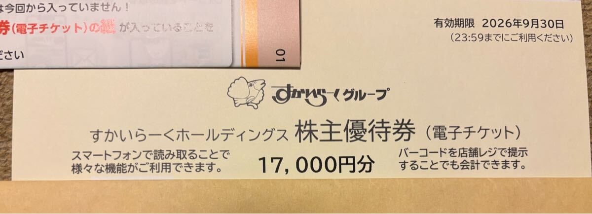 最新のすかいらーくホールディングスの株主優待券17000円分です。