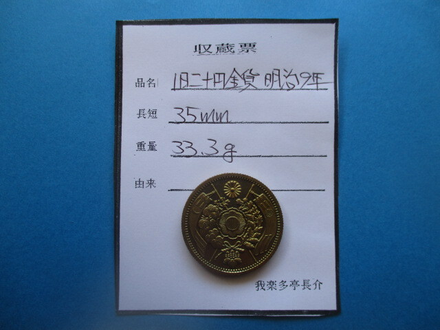 古銭貧乏、涙の赤字出品! 旧二十円金貨 明治九年