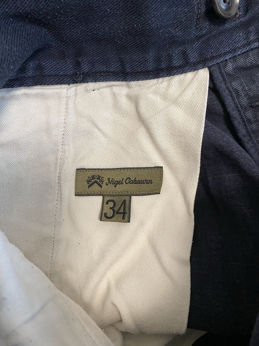 Nigel Cabournのカーゴパンツです。MAIN LINE、カラーはネイビー、サイズは34です。ナイジェル好きな方どうぞ。