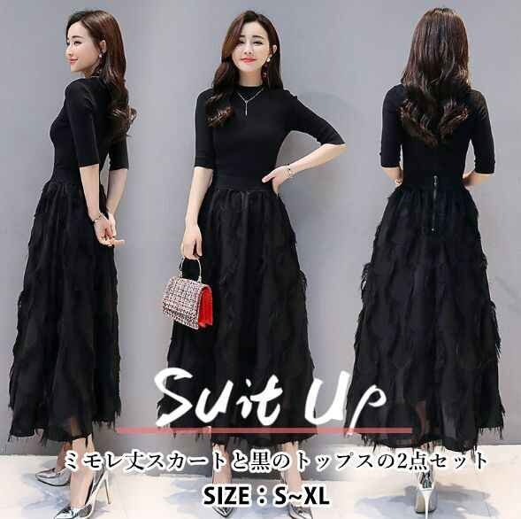ロングチュールスカートと黒のトップスの2点セットです。