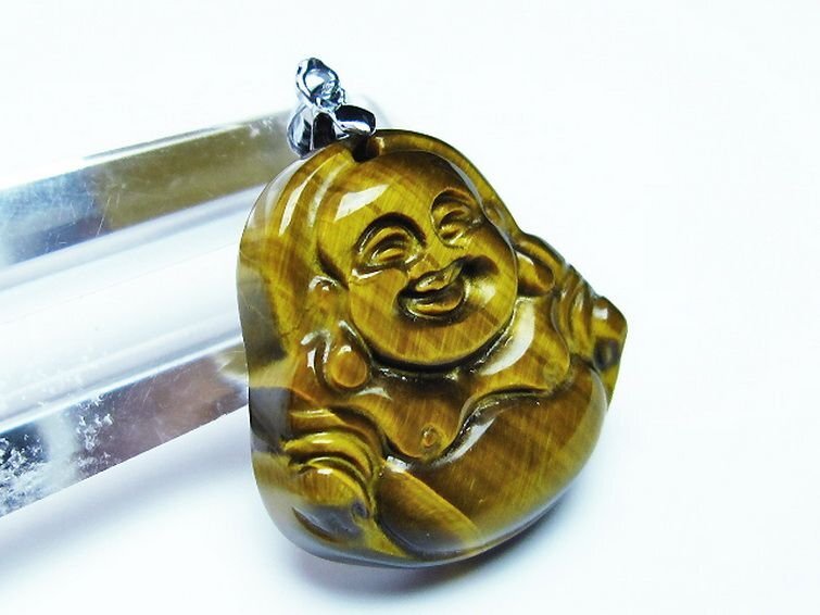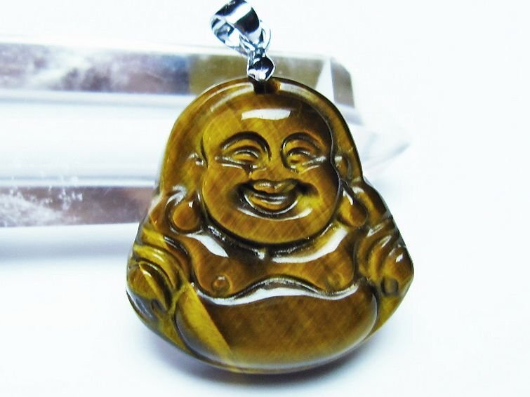 | ■商品名: タイガーアイ※黄虎目石布袋様ペンダント ■商品ID: T186-1547 ■商品重量:約 7.7g ■商品サイズ: 高約:25mm 横約:24mm 厚約:7mm 【タイガーアイ(虎目石)】 タイガーアイは角閃石の一種のクロシドライト(青石綿)に石英が染み込んで酸化し、茶色や黄金色になったものです。 研磨すると光の当たり具合によってキャッツアイ効果、またはシャトヤンシー効果と呼ばれる猫の目のような光の筋が見られ、その輝きと黄金色と褐色の縞模様が虎の眼に見えることからこの名前が付けられました。 ベーシックな金茶色の他にも様々な色合いがあり、温度が高い環境で生成されると深い赤みを帯びたレッドタイガーアイになります。 この他にクロシドライトが酸化せずに生成された灰色のグレータイガーアイは「ウルフズアイ(狼目石)」、濃青色をしたブルータイガーアイは「ホークアイ(鷹目石)」と呼ばれ、タイガーアイとは区別される場合があります。 タイガーアイは視野を広げ正しい判断力と行動力で成功へ導くとされ、ルチルクォーツに匹敵するほどの金運・仕事運アップストーンとして高い知名度と人気を誇っています。 また男性イメージの強い石ではありますが、強力な邪気払い・トラブル回避の効果も持ち合わせていますので女性にはストーカーやセクハラ対策のお守りとしても有用です。 ⇒ タイガーアイをもっと詳しく ◆ワンポイント情報 タイガーアイは塩分によって劣化しやすいので汗が付いた場合は柔らかい布で拭き取るようにし、塩を用いた浄化は行わないように注意しましょう。 |