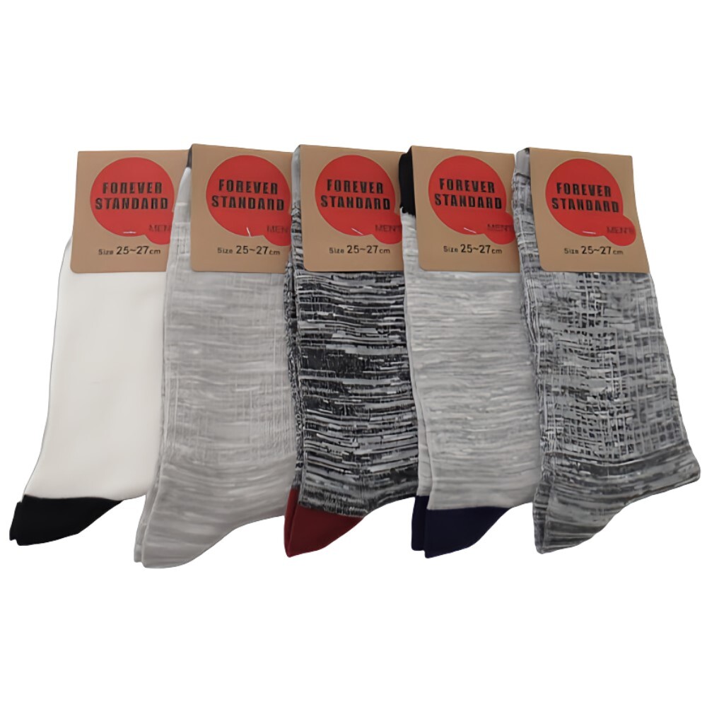 スラブ編み ソックス 5足セット 引き揃え柄 暑い季節にも快適な履き心地 スラブ糸 綿混素材
