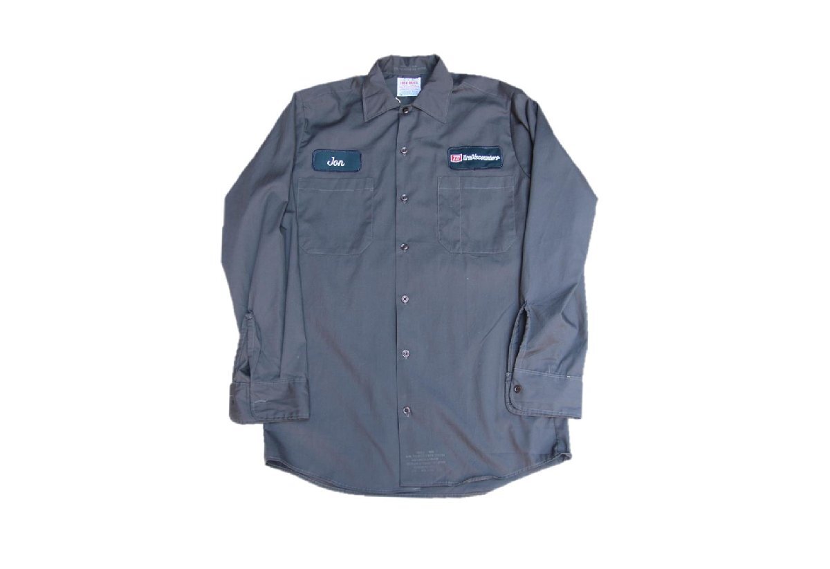 1970年代から80年代頃のLoev Bros製のワッペン付きワークシャツとなります。ユニオンメイド表記入りのオールド物で、両ポケット上部に恐らく前所有者ネームと企業のワッペンが付く事から企業の作業着、ユニフォーム等で使用されていた物かと思われます。カラーは希少なブラックで、オールドワークシャツによく見られる裾部分にはプリント表記入り、サイズは14Hとタイト目なサイズ感となります。黒ベースで使い易いので、ジャストサイズもしくはあまり大き過ぎないサイズ感をお探しの方は是非ご検討下さい。