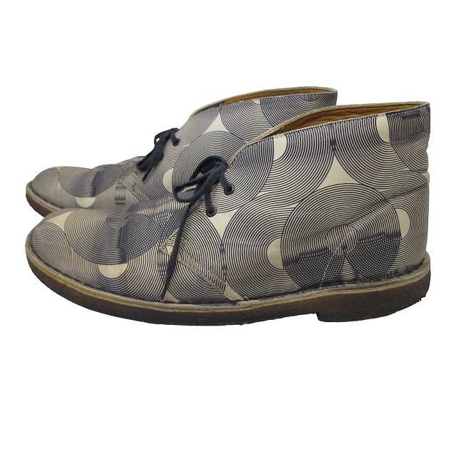 クラークス clarks ORIGINALS 靴 ショートブーツ サークル総柄 28.5cm相当 ホワイトブ ラック a477 1011 メンズ