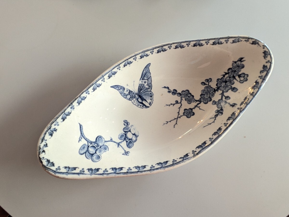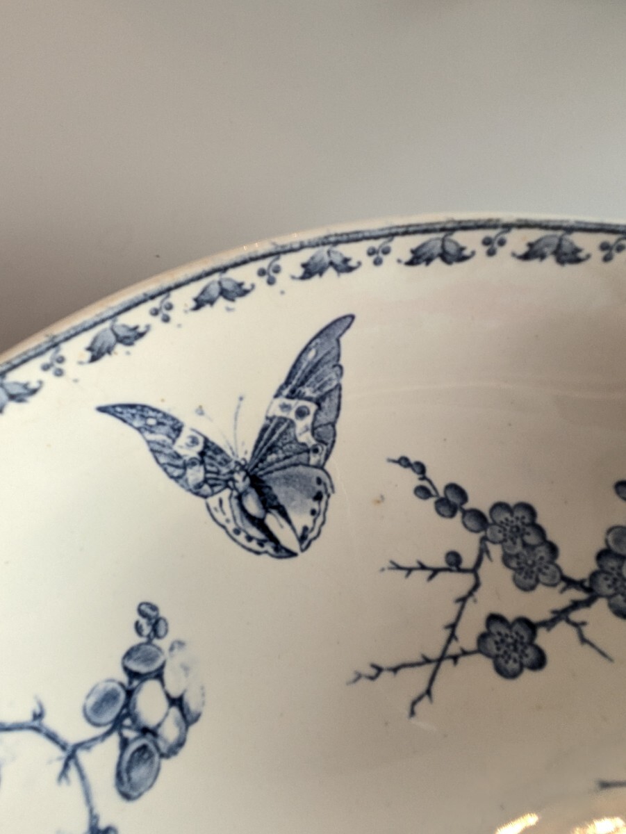 ブロカント購入 Sarreguemines サルグミンヌ Carmen ラヴィエ 皿 蝶々 ブルー アンティーク 24cm 海外発送(送料2700円)