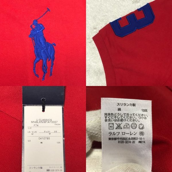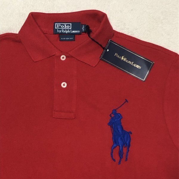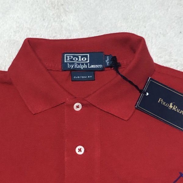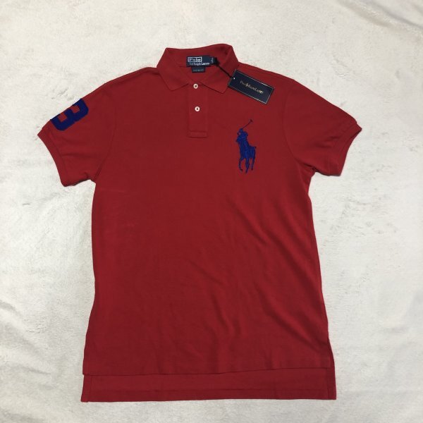 未使用保管品 POLO RALPH LAUREN ポロ ラルフローレン 半袖ポロシャツ 鹿の子 ビッグポニー刺 ナンバー刺繍 赤 Mサイズ