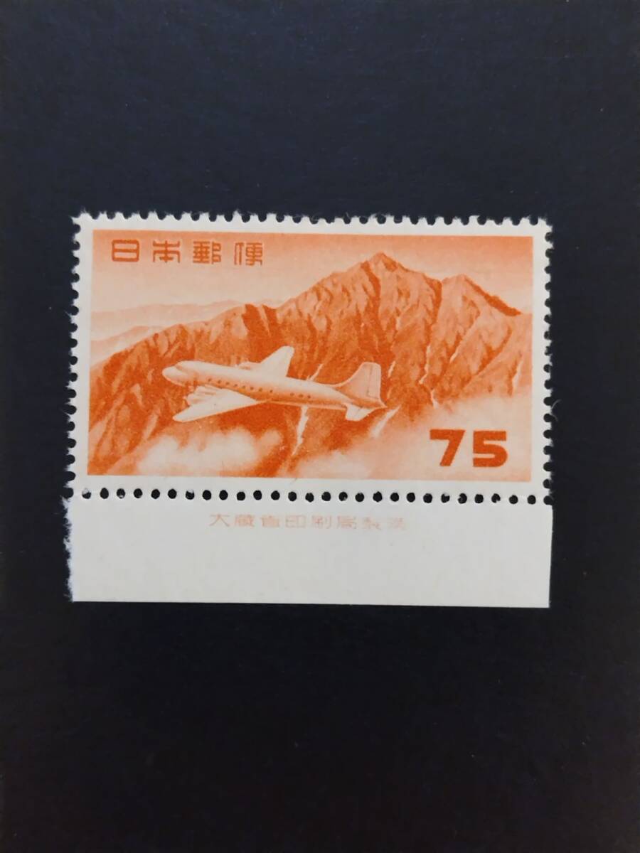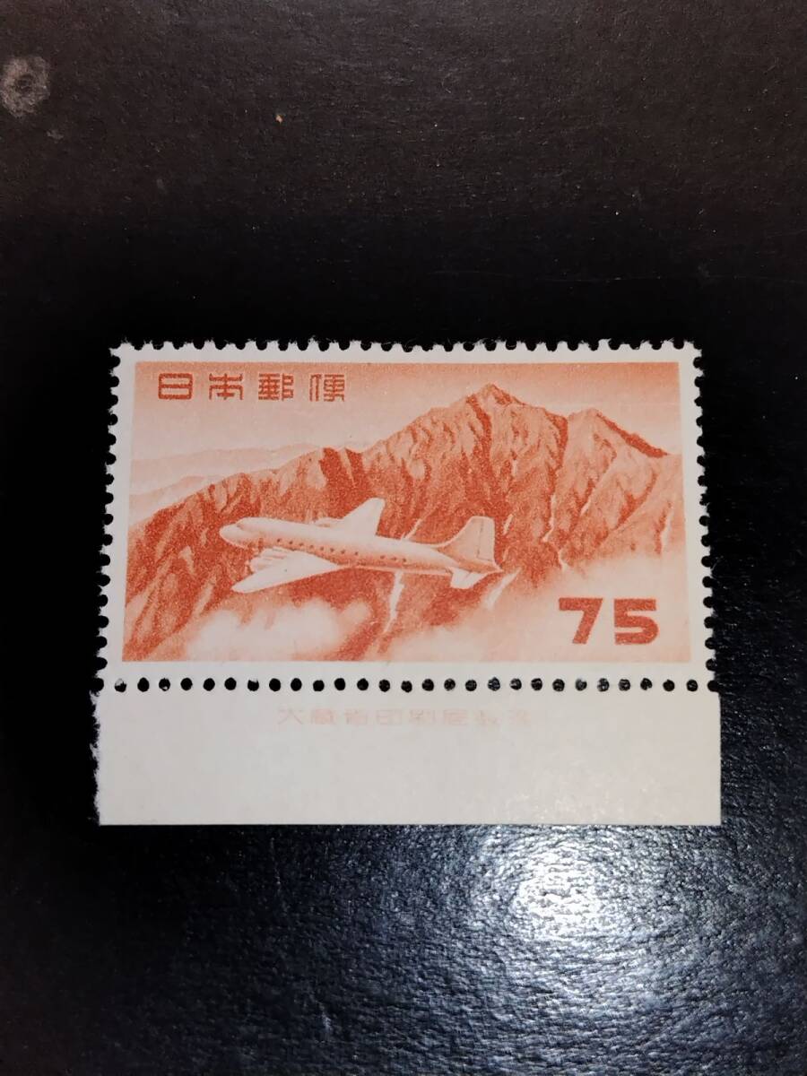 収集家の処分品!円単位立山航空切手75円銘版付NHほぼ美品・のりツヤ最高です。