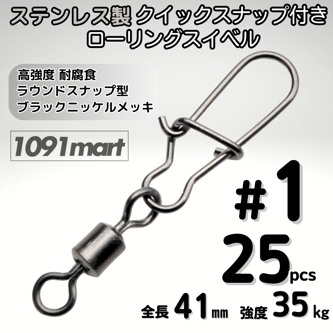 ステンレス製 クイックスナップ付き ローリングスイベル #1 (41㎜ 35㎏) 25個セット スナップ サルカン 様々な釣りに【1091mart】