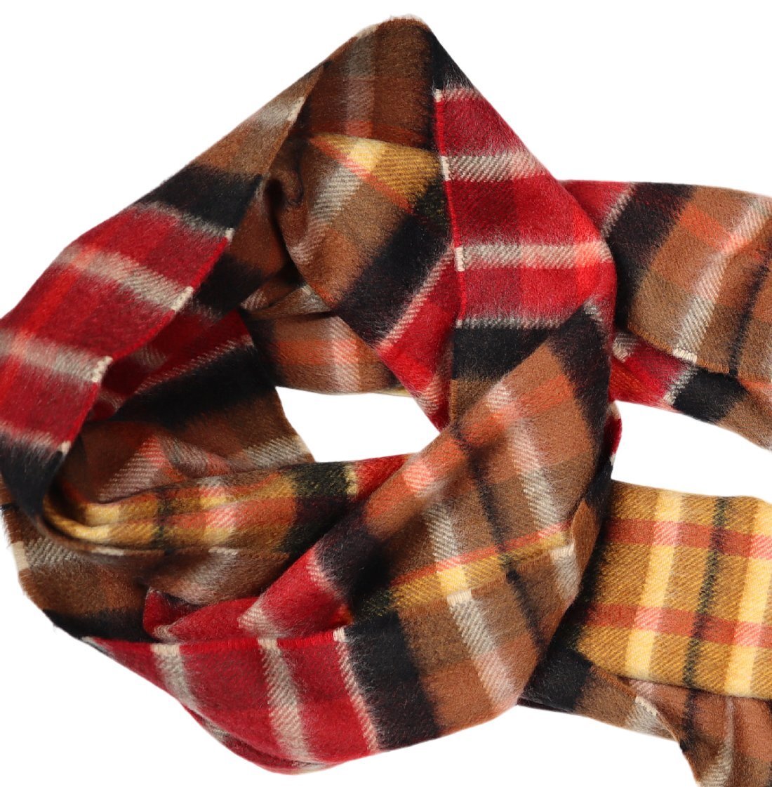 公式カラーは「SUNLIT BRACKEN」で、「ブラウン」「レッド」「ブラック」「マスタード」「ホワイト」などを織り交ぜた、ブラウンがメインのタータンチェック柄。伝統柄をモダンに昇華し、都会的で温もり感ある英国チェック柄になっております。見るからに「ラグジュアリー感漂う上品な光沢」や「最高級カシミヤ独特な細かな起毛の風合い」は美しいの一言。ユニセックスで使用できます。