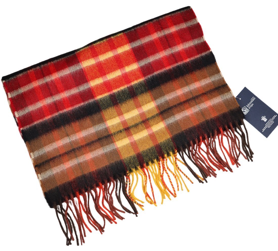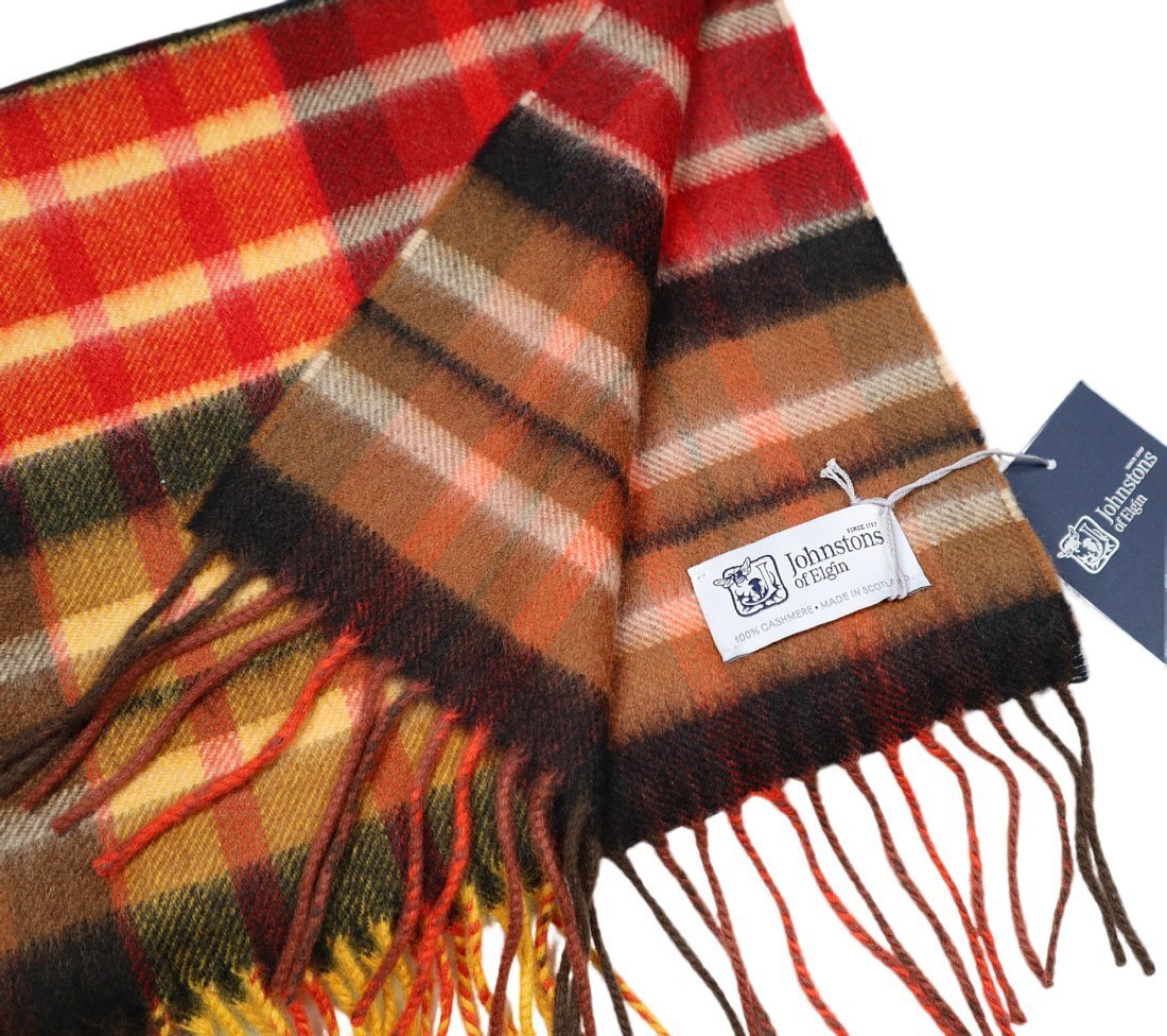 冬の温もり感ある茶系マルチカラーのモダンタータン!【 Johnstons / ジョンストンズ (英 】美しい艶と発色の中判カシミヤマフラー