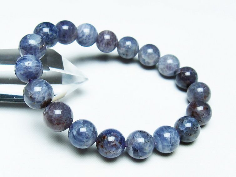 ■商品名: スーパーセブンアイオライトブレスレット ■商品ID: T378-4263 ■商品重量:約 30.9g ■商品サイズ:内周約:164mm(±5mm)粒直径約:11mm(±0.5mm) 【アイオライト(菫青石)】 正式な鉱物名を「コーディエライト」といいます。 アイオライトという通称はギリシャ語ですみれ色を意味する「ion」から名付けられ、和名では菫青石(きんせいせき)と呼ばれます。名前通りの美しいすみれ色が特徴ですが、アイオライトは多色性の性質を持ち合わせています。 見る角度や光の当たり方によって変わる紫色や青色、青みがかった灰色や薄黄色などのシックで独特な色合いはアイオライト最大の魅力といえるでしょう。 この多色性を活用して大昔には羅針盤として用いられていたことから、アイオライトは「導きの石」として視野を広げたり新しい一歩を踏み出すための判断力と決断力をもたらすといわれています。 恋愛面においても迷いが生じたときに現状を打開する勇気を与えて一途で深い愛情をもたらすとされ、結婚や恋人との生活で心強いサポートが得られそうです。 ⇒ アイオライトをもっと詳しく ◆ワンポイント情報 アイオライトのなかには雲母に変質し、断面が桜の花のような模様をした桜石と呼ばれるものも存在します。京都府亀岡市で発見された桜石は稗田野菫青石結晶として国の天然記念物に指定されています。 |
