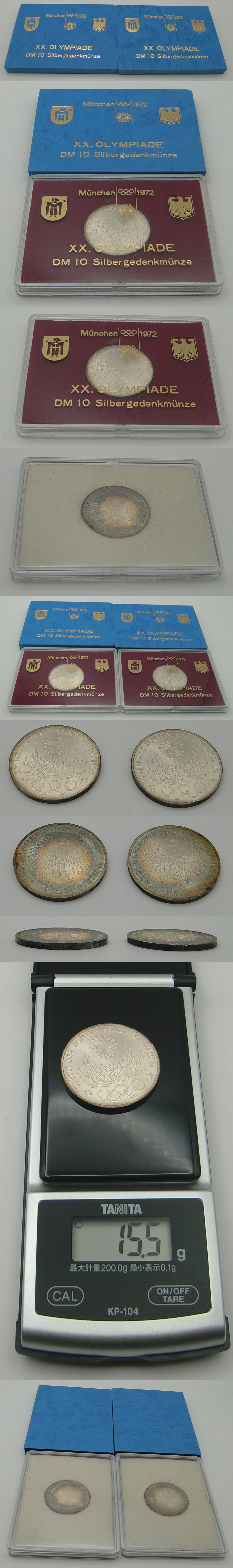 1972年ミュンヘンオリンピック10マルク銀貨1枚 2点セットです。
