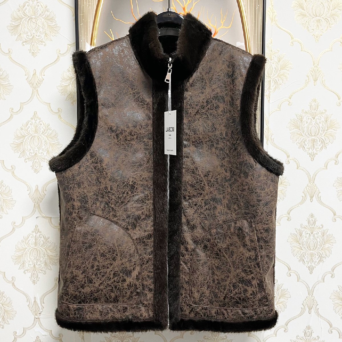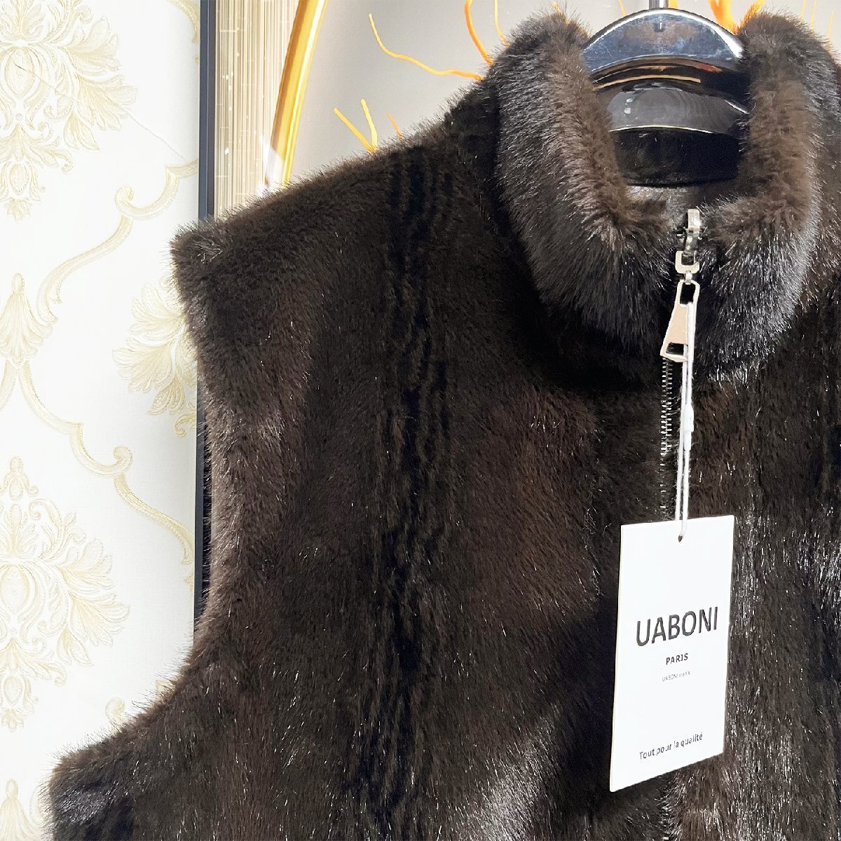 高級 EU製&定価8万UABONI*Paris*ファーベスト*ユアボニ*パリ発◆豪華毛皮 ミンク混 防寒 ふわふわ リバーシブル 2WAY ジャケット 秋冬 L/48サイズ