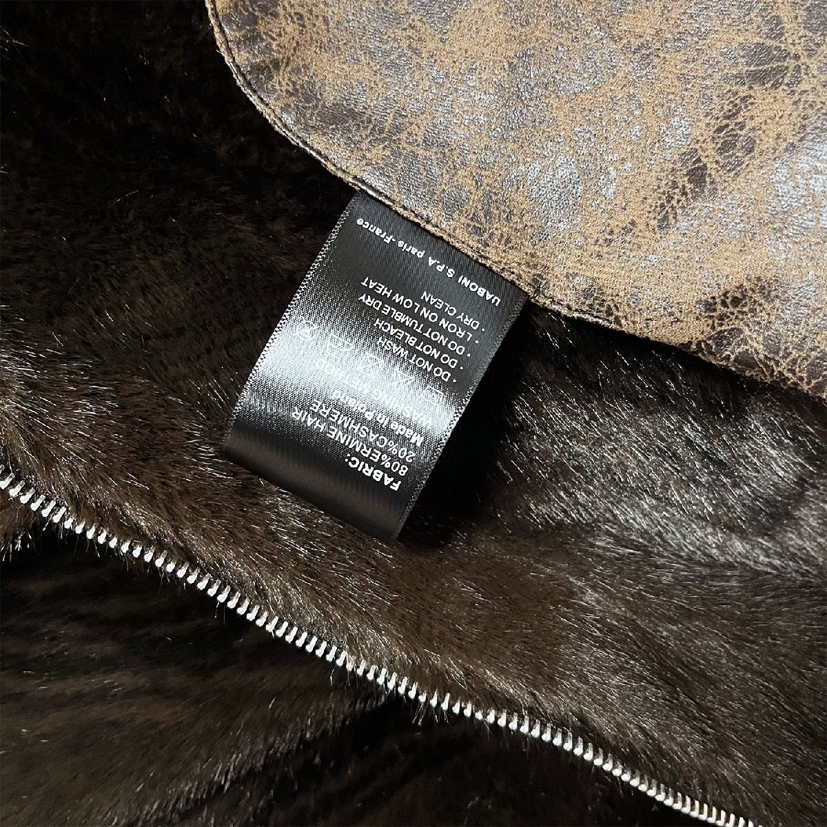 上質なミンクを80%、カシミアを20%使用し、ふわふわとした柔らかな手触りに加え、自然な光沢感があり、見た目にも高級感が漂います。軽やかな着心地でありながら、しっかりとした保温性も備えており、秋冬の装いを華やかに彩ってくれる一着です。