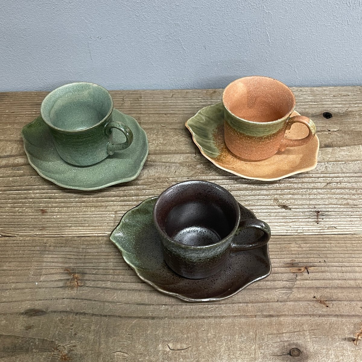 未使用品 保管品 コーヒーカップ 銘々皿 5客セット 葉っぱ型 うつわKOBE