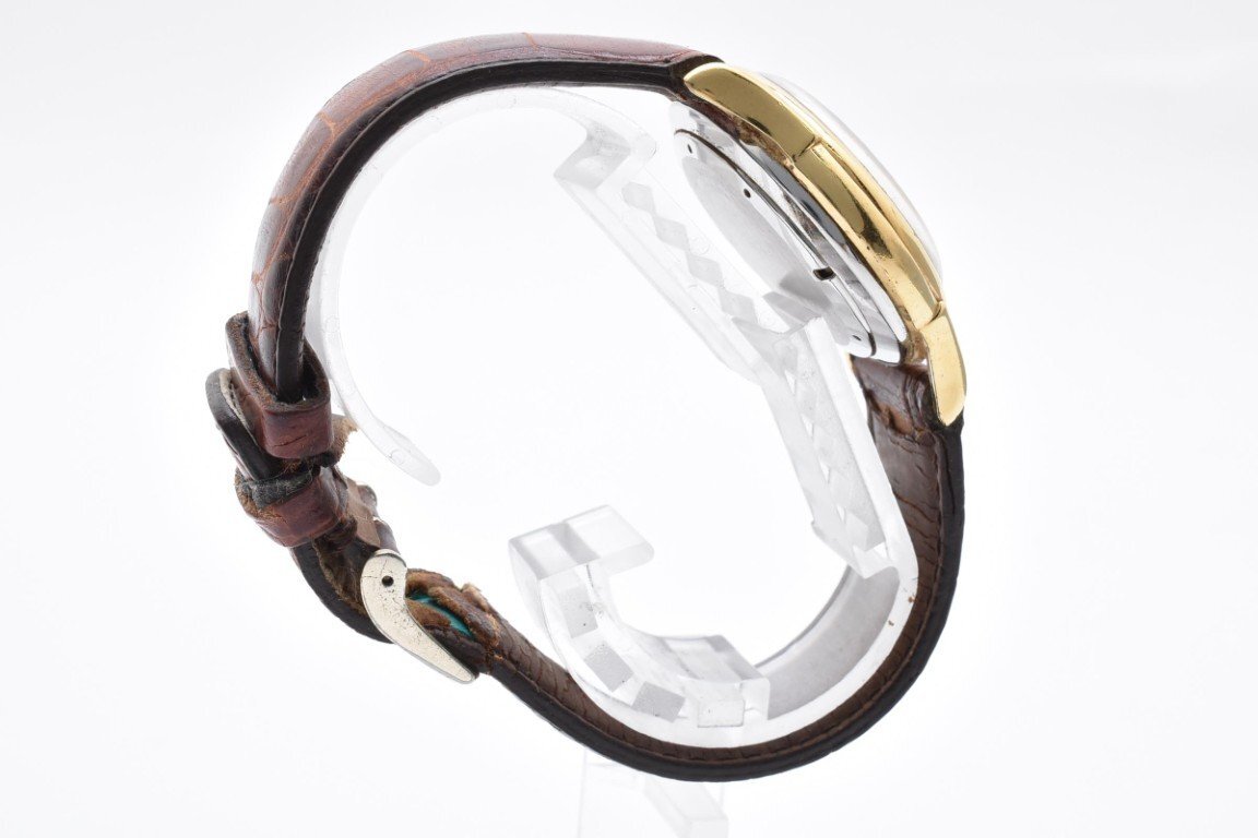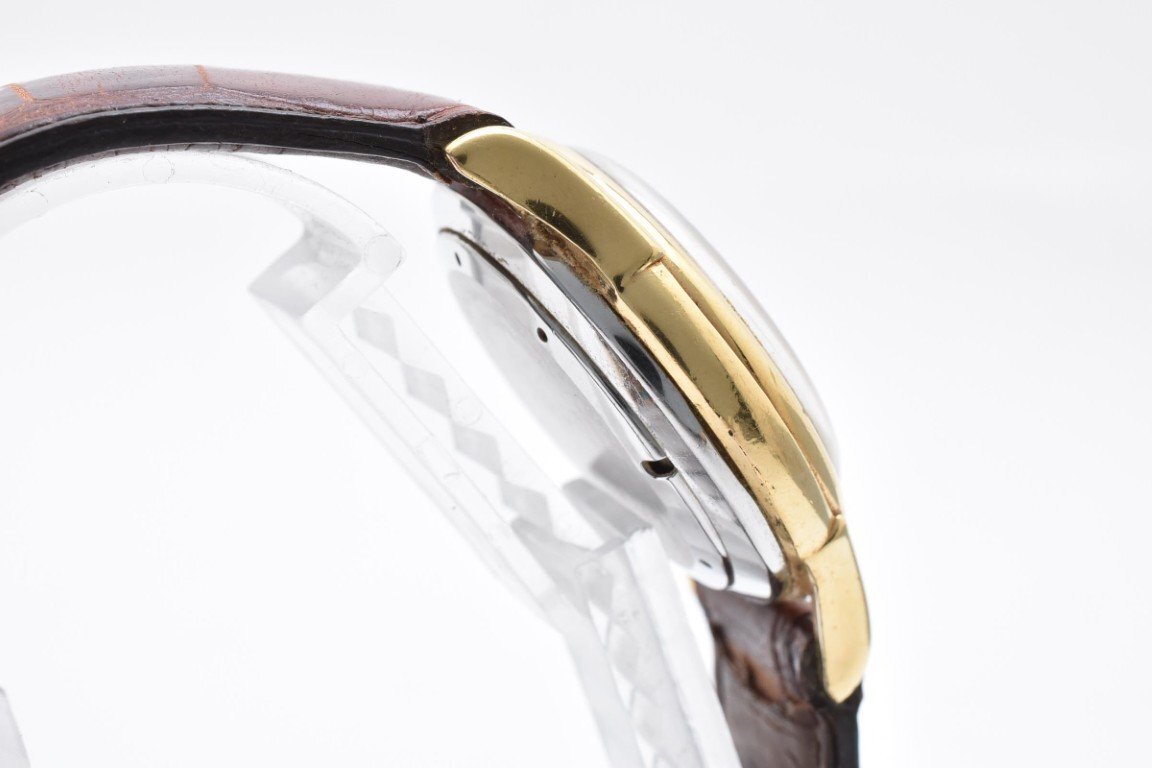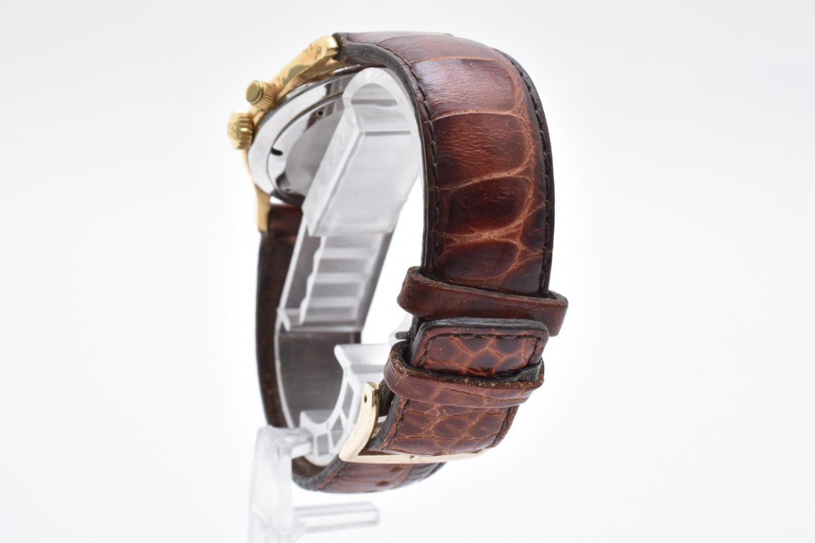 使用による傷や汚れございます。稼働品。アラーム用リューズ不良。レザーベルト劣化。現状出品。(画像参照) |