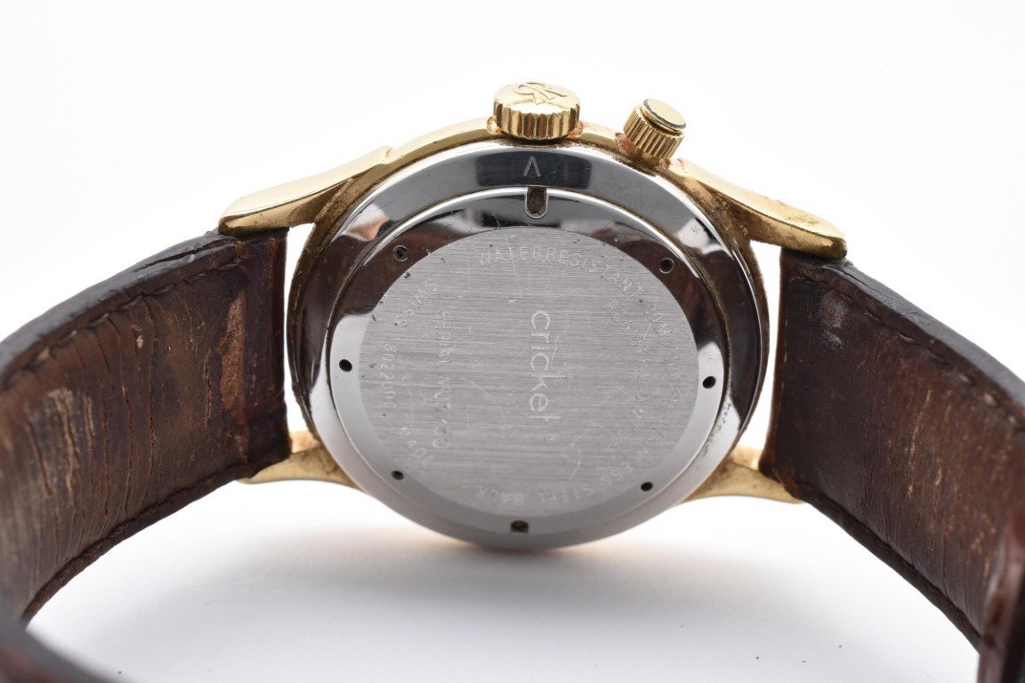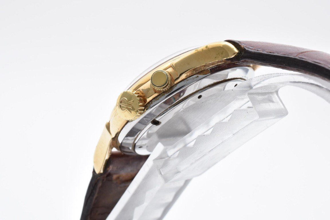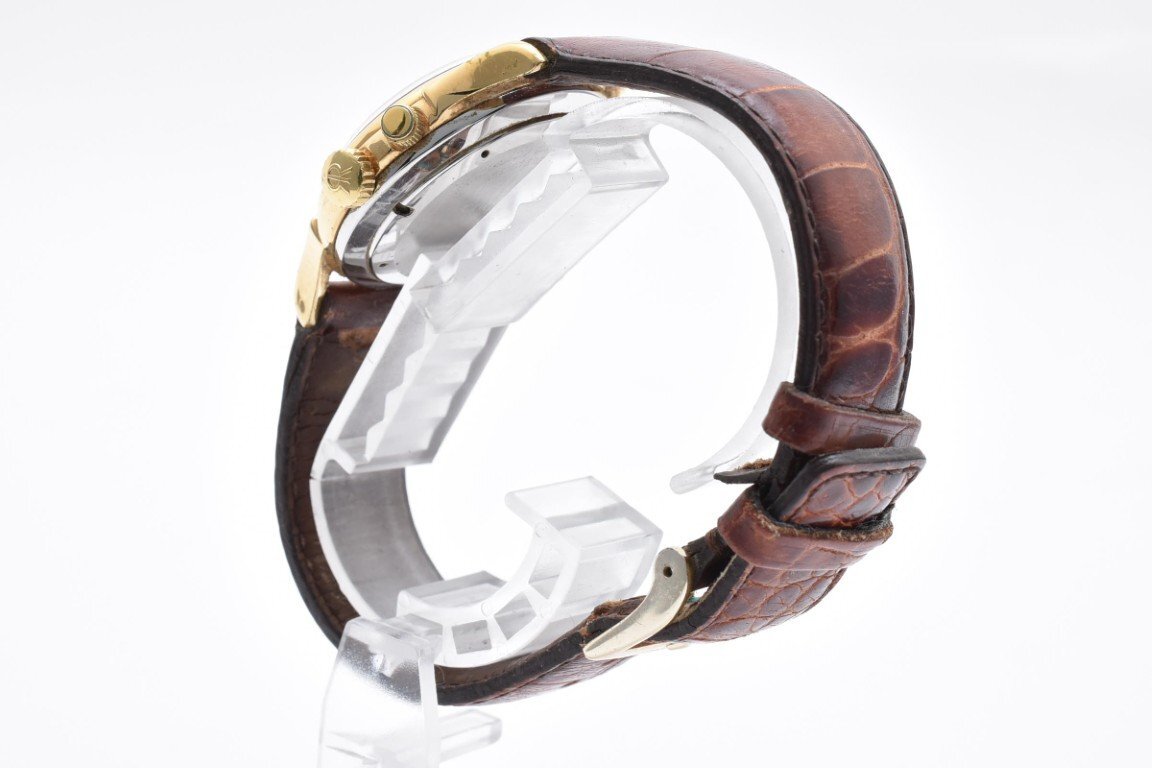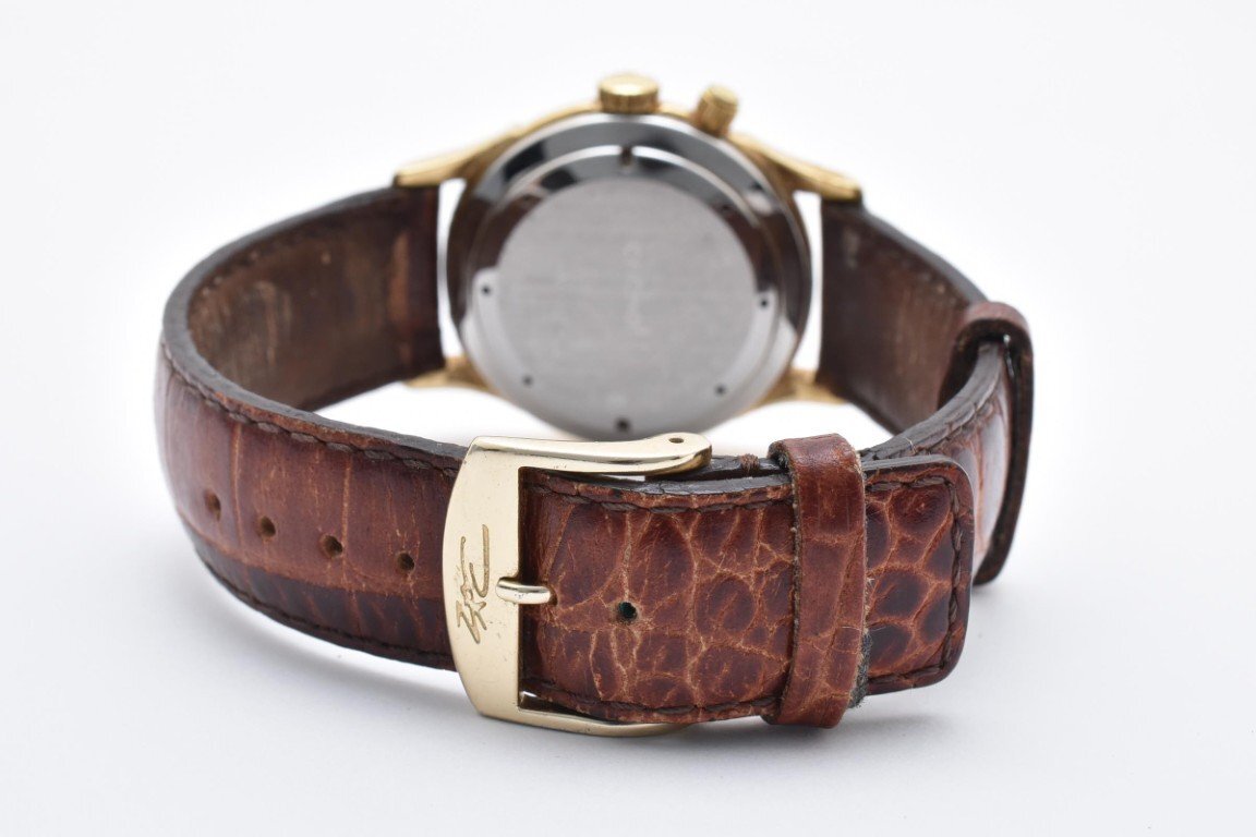 使用による傷や汚れございます。稼働品。アラーム用リューズ不良。レザーベルト劣化。現状出品。(画像参照) |
