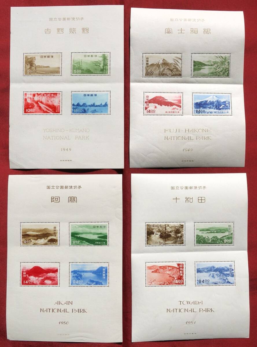 【旧国立公園切手!!】(21) 小型シート4種まとめて 吉野熊野・富士箱根・阿寒・十和田 未使用 型価3.3万円‐α