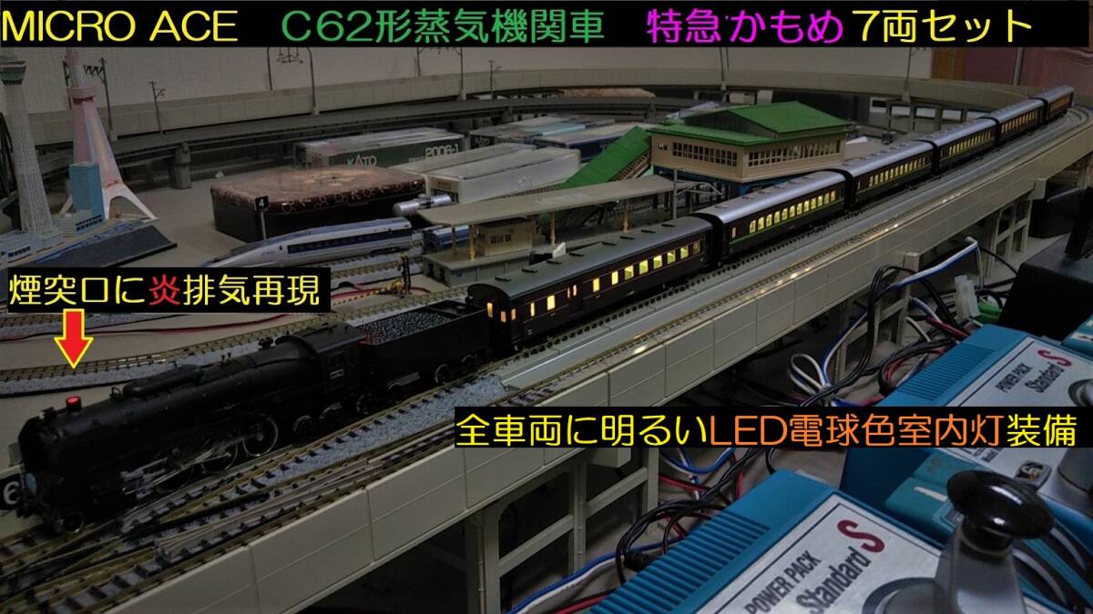 ★フルLED化 完成品 美品 MICRO ACE  A-4230  C62蒸気機関車 特急かもめ号7両セット 客車LED電球色室内灯装備★送料一律600円