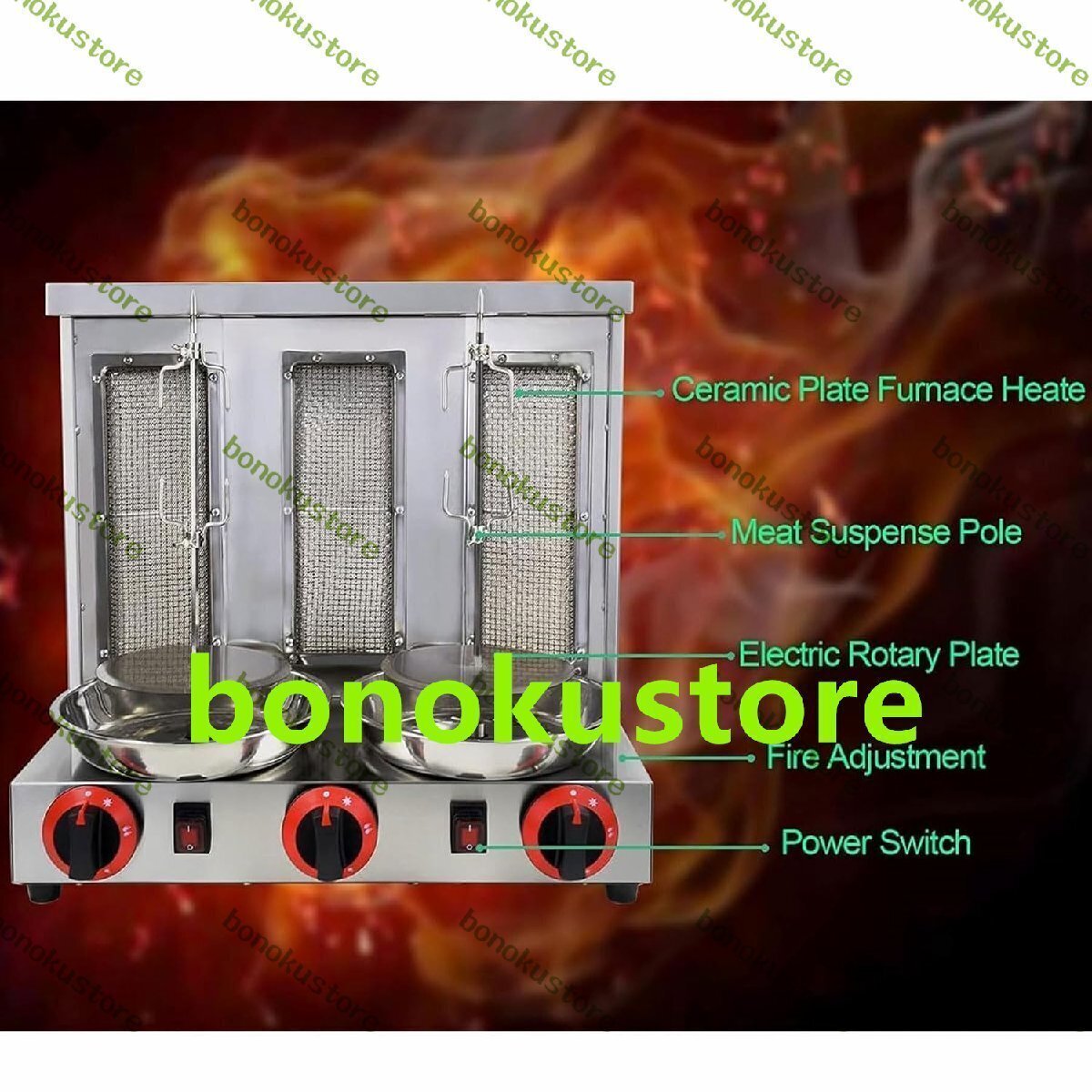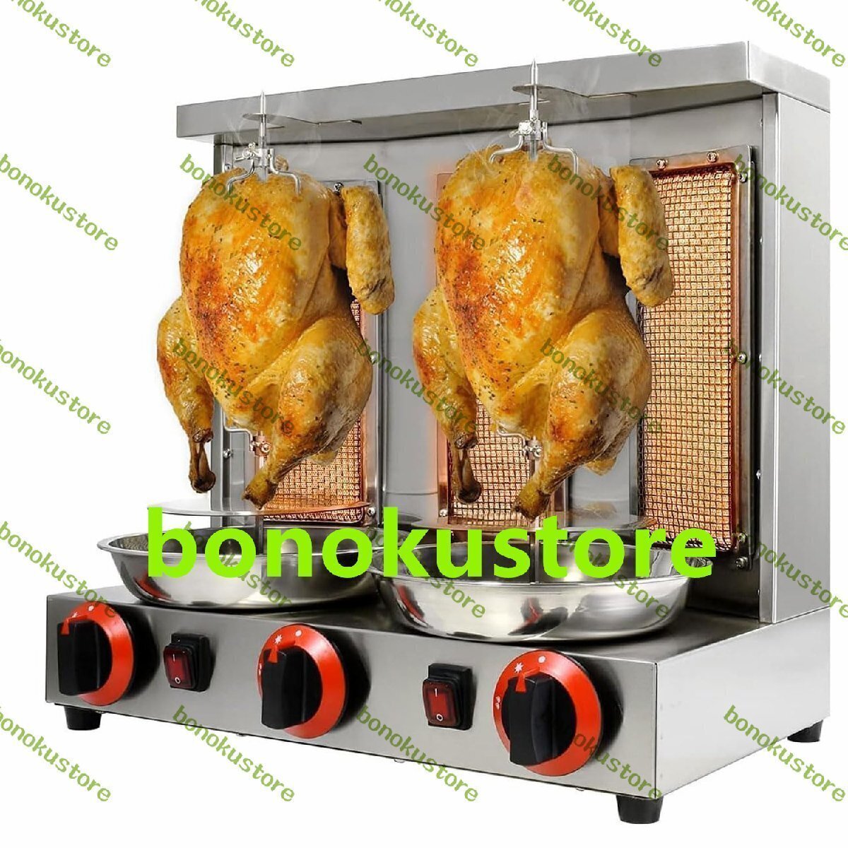 商業ガスグリル、ステンレス鋼垂直ジャイロガスグリルロティサリーマシン、360度回転加熱、2列の冷却穴、レストラン、スナックバー、家族の集まり用