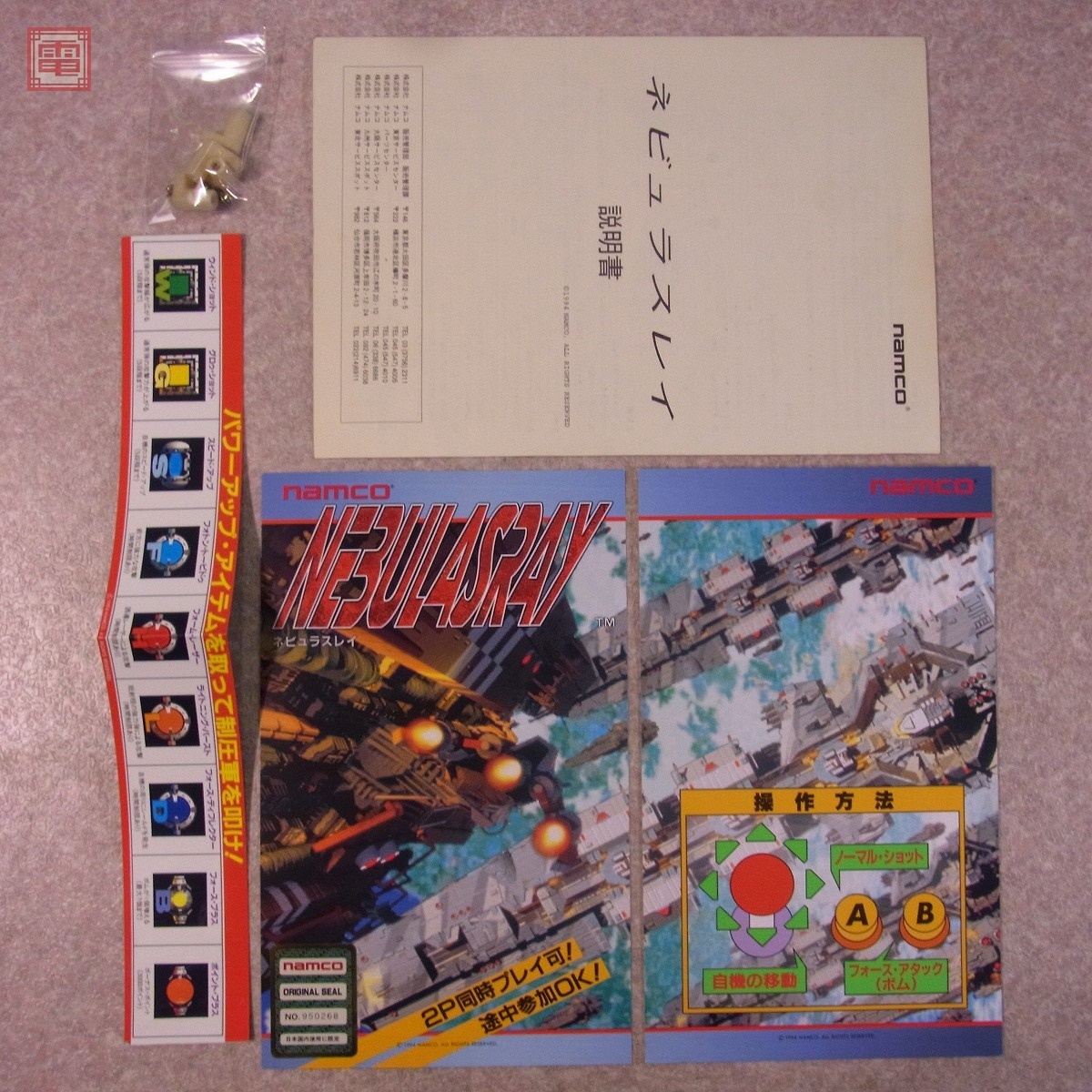 ナムコ/NAMCO ネビュラスレイ NEBULASRAY マザー電解コンデンサ全交換済 イン取帯純正 動作確認済 ■こちらの商品は【通常の中古品】となります。 ■付属インスト:純正 ■付属説明書:純正 ■その他付属品:帯…純正 ■動作状況:正常動作確認済 ■規格:JAMMA ■その他 ・起動チェック後、初期動作の確認を行いました。 ・一部ROMコピーです。 ■上記以外は未チェックです。 ■チェックに使用した筐体等は付属いたしません。 ■初期不良の保証は商品受け取りから1週間となります。受取後は早々に商品をご確認下さい。(保証は国内でご利用の方に限ります。) ■商品到着後、当店の保証期間中は、商品及び箱や取説や付属品などを1つでも廃棄や破損をしないようお願い致します。尚、廃棄や破損をした場合、商品に問題があった場合でも返金対応などの対応が出来なくなります。 ■ご入札はある程度の知識をお持ちの方のみお願い致します。 | |||