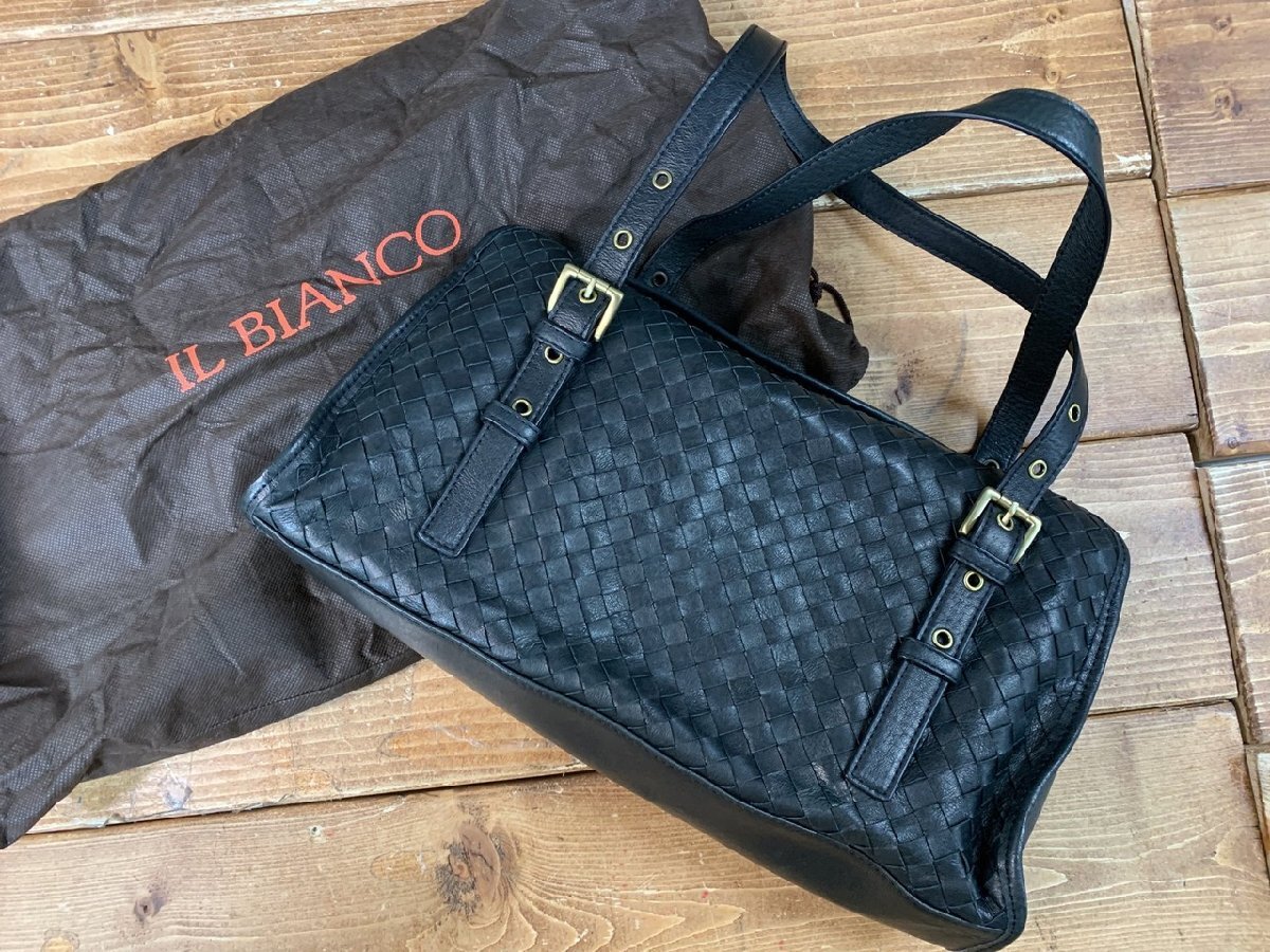 【YJ-0830】ILBIANCOイルビアンコレザー トートバッグ ハンドバッグ メッシュレザー編み込み 同梱可【千円市場】