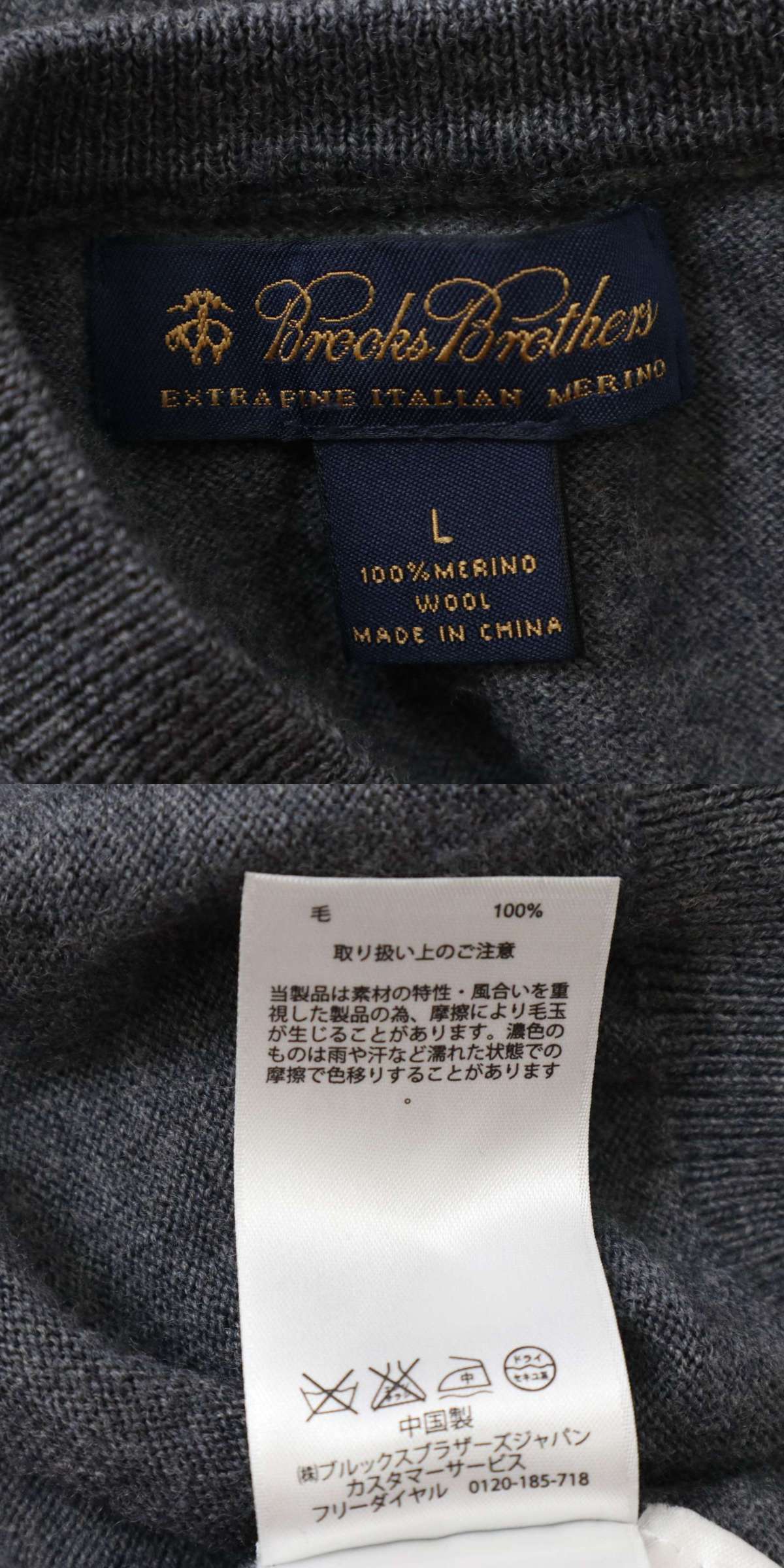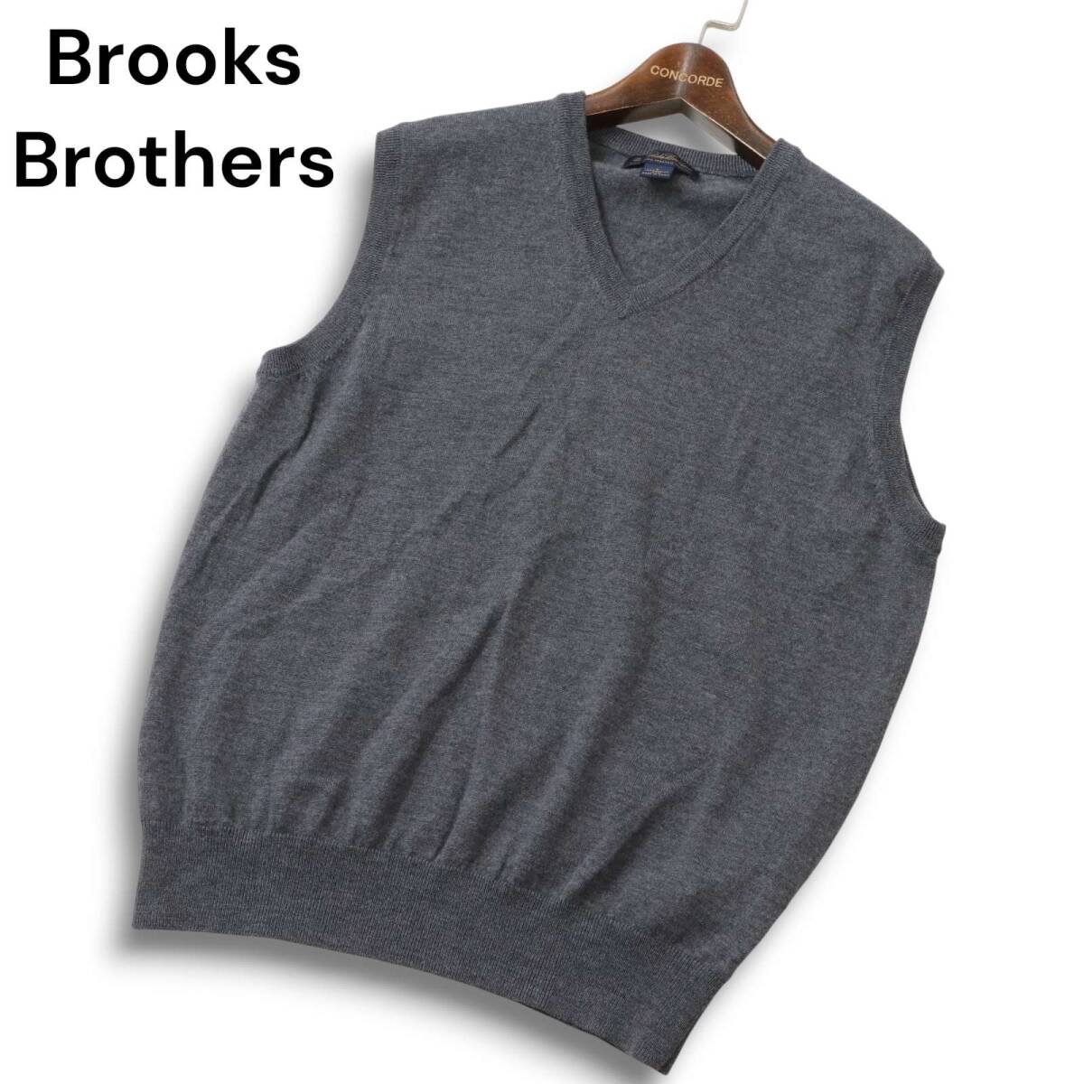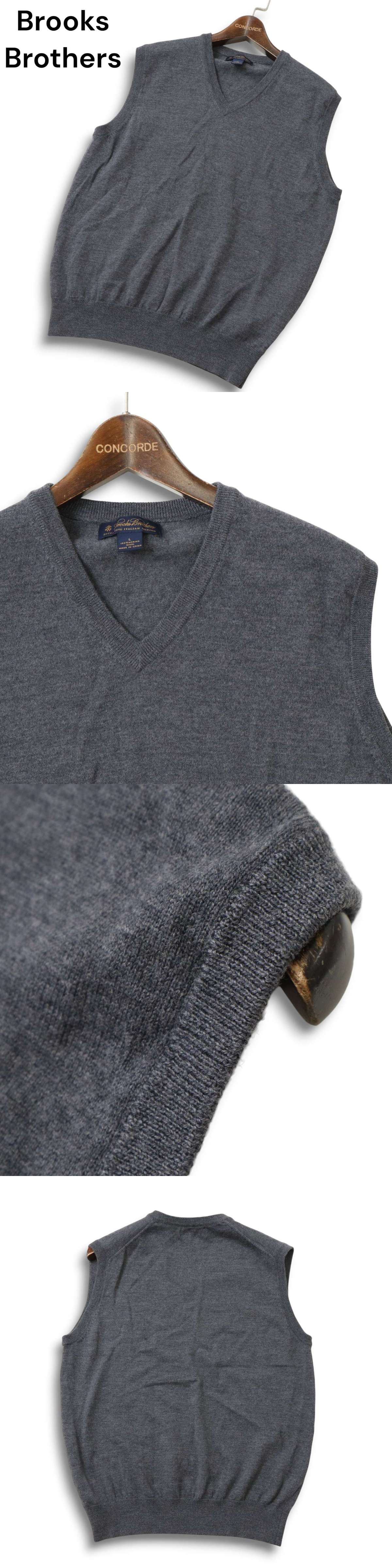 Brooks Brothers ブルックスブラザーズ 秋冬 イタリアン メリノ ウール100%★ Vネック ニット ベスト Sz.L メンズ 灰 グレー