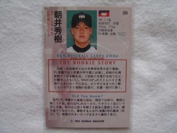 【BBM プロ野球カード 2002】No.204 朝井秀樹 大阪近鉄バファローズ【トレーディングカード トレカ ベースボールマガジン社 ルーキー】