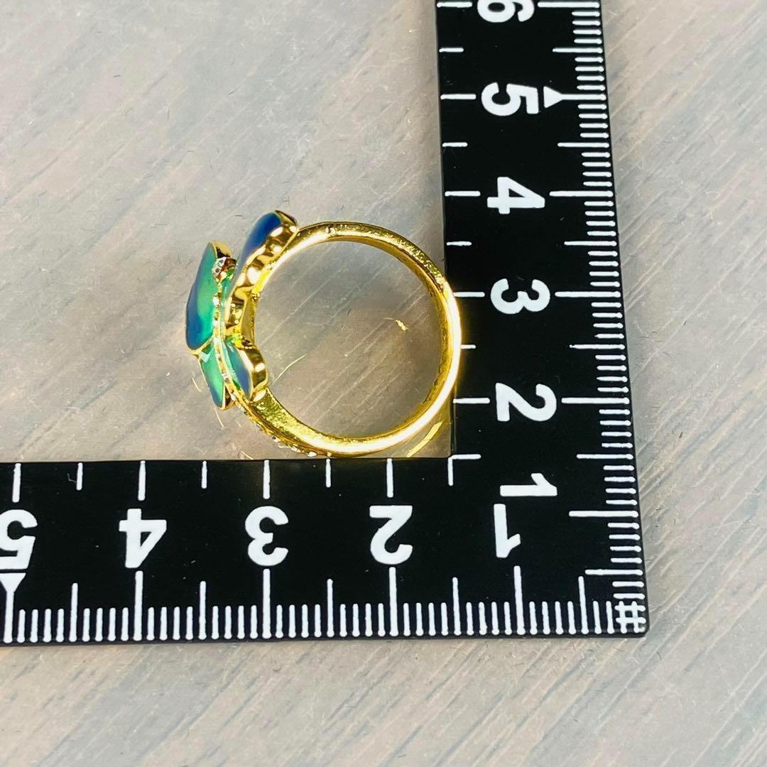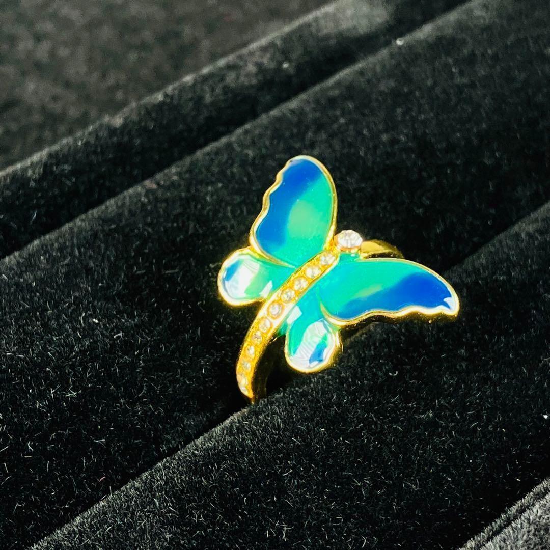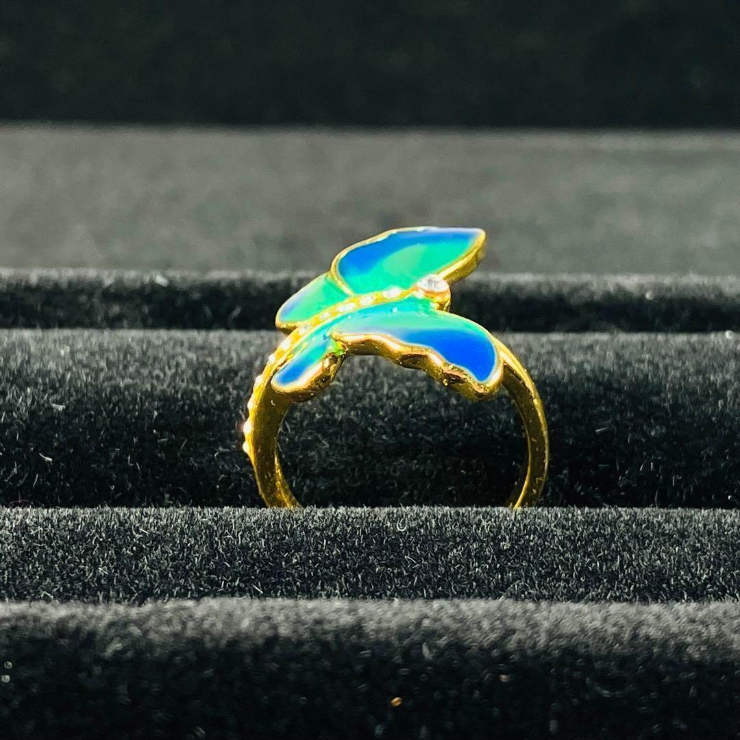 61-6 新品 指輪 バタフライ レディース ゴールド 蝶々 アニマル 可愛い リング ブルー お洒落 人気 デザイン ギフト プレゼント