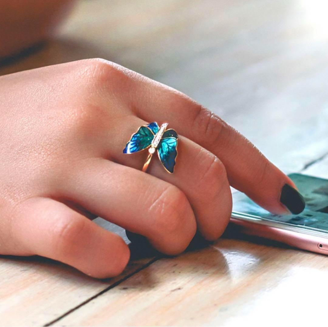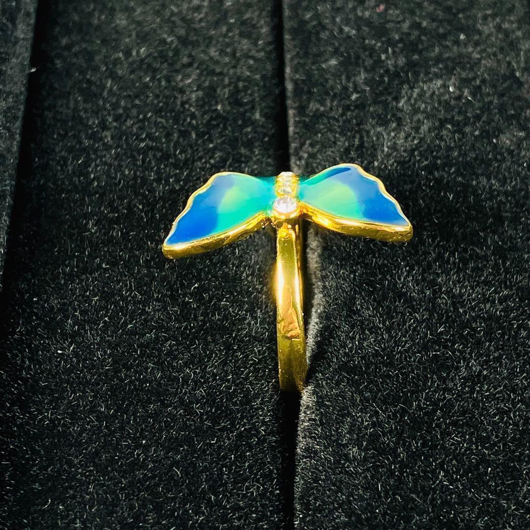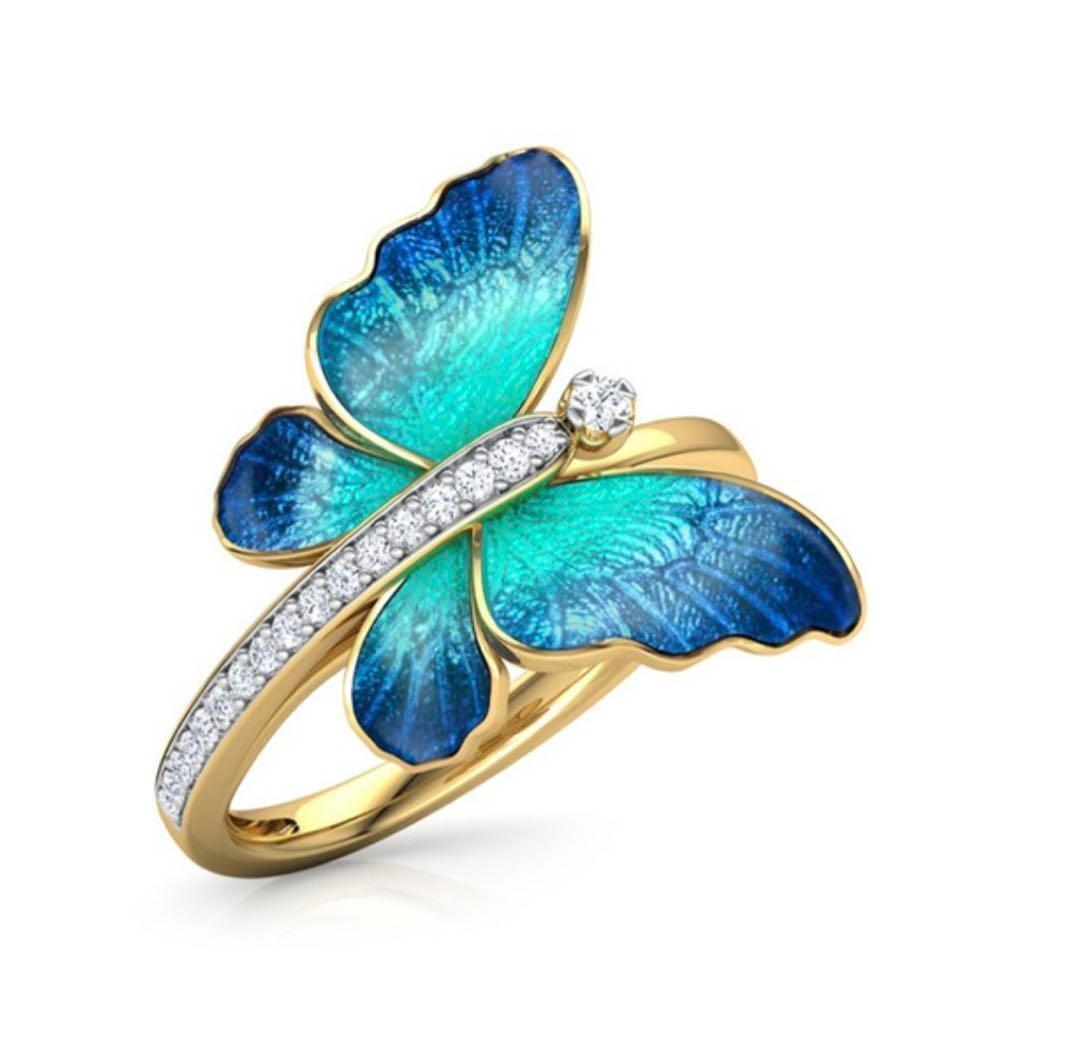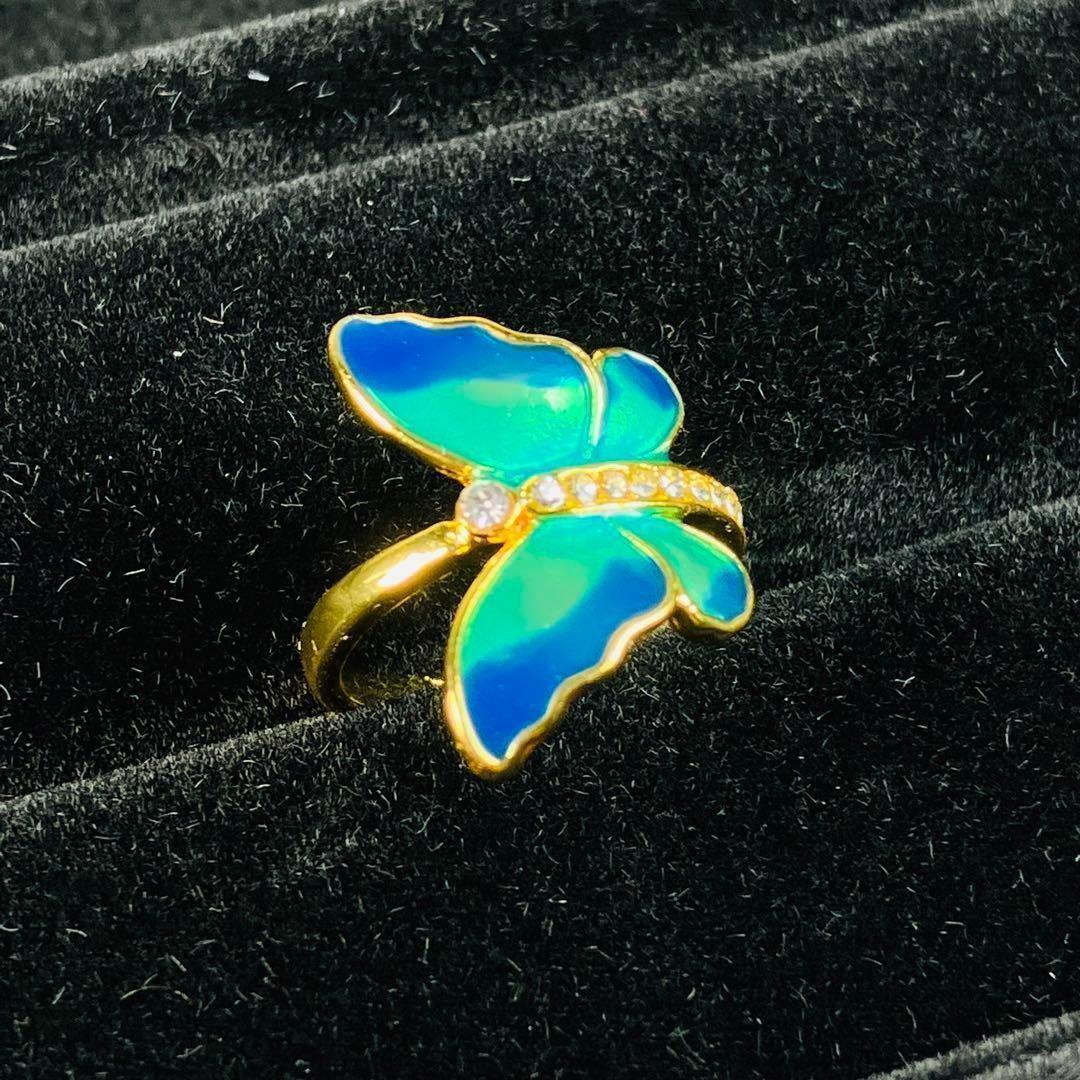 61-6 新品 指輪 バタフライ レディース ゴールド 蝶々 アニマル 可愛い リング ブルー お洒落 人気 デザイン ギフト プレゼント