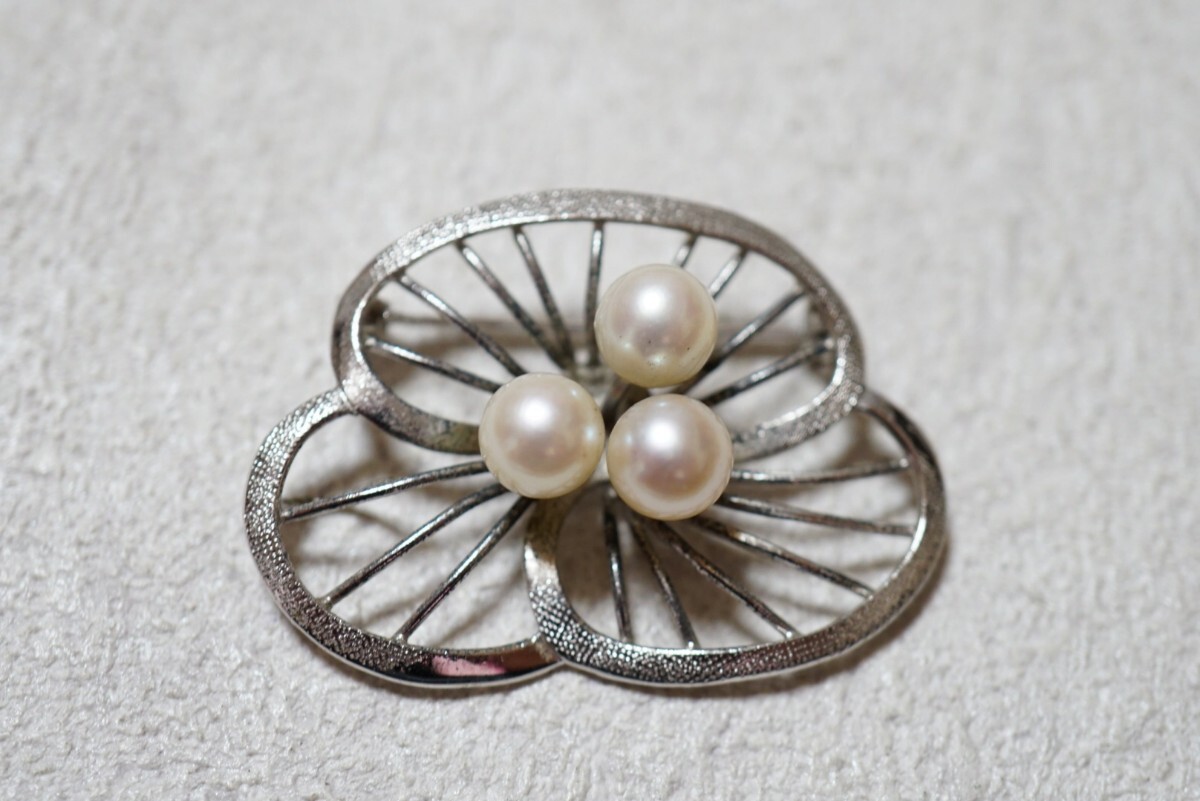 594 アコヤ真珠 本真珠 パール シルバー ブローチ ヴィンテージ アクセサリー SILVER刻印 冠婚葬祭 あこや 装飾品