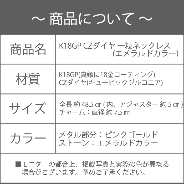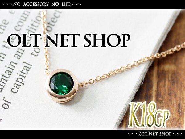 新品/ネックレス/K18GP/エメラルド/ダイヤ/一粒/18金/レディース/ピンクゴールド/チェーン/CZ/0.5ct/カラー/緑/シンプル/女性/PG