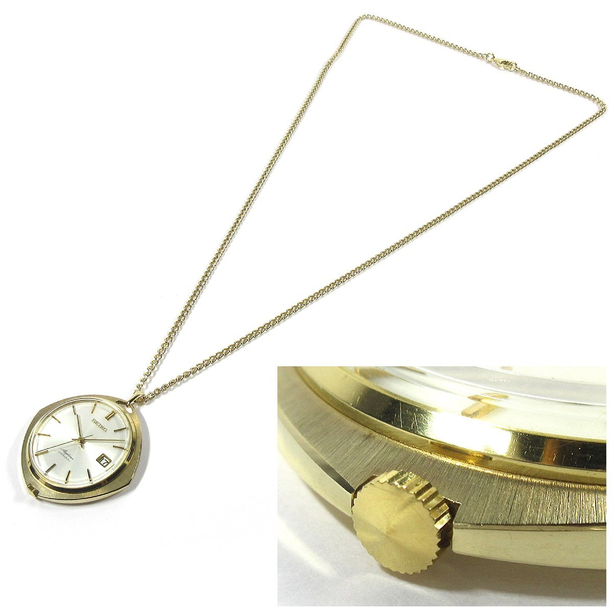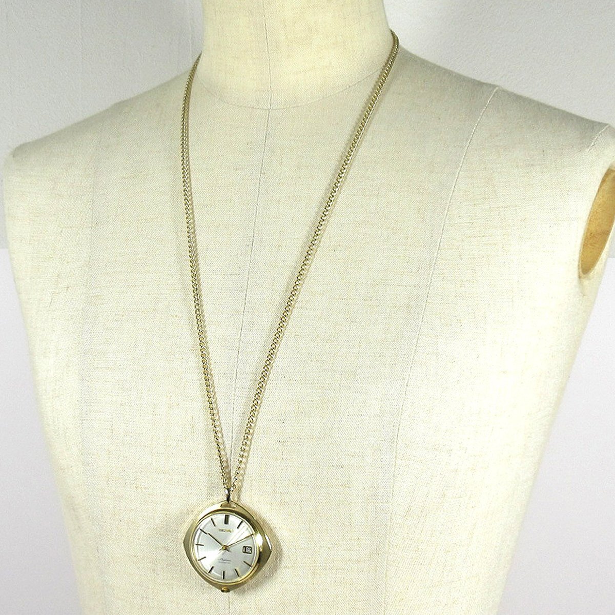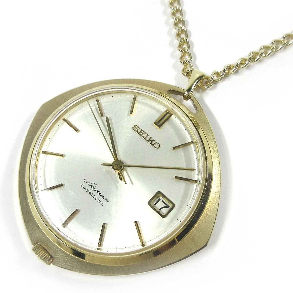 セイコー 1967年 ヴィンテージ 6222-0010 スカイライナー 放射シルバーデイト 手巻 懐中時計 ネックレス GP 箱付 HKPW32
