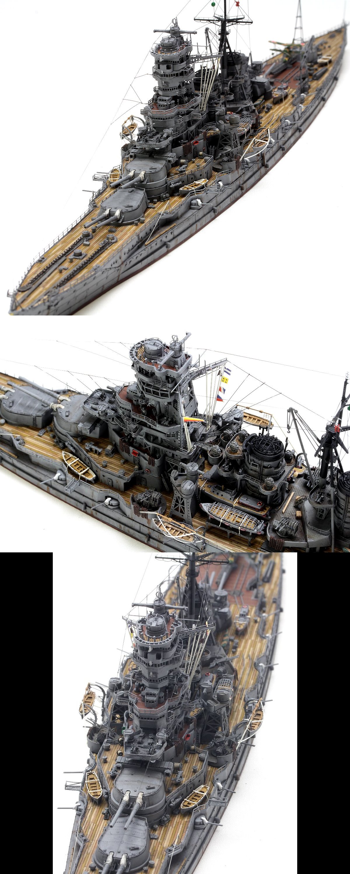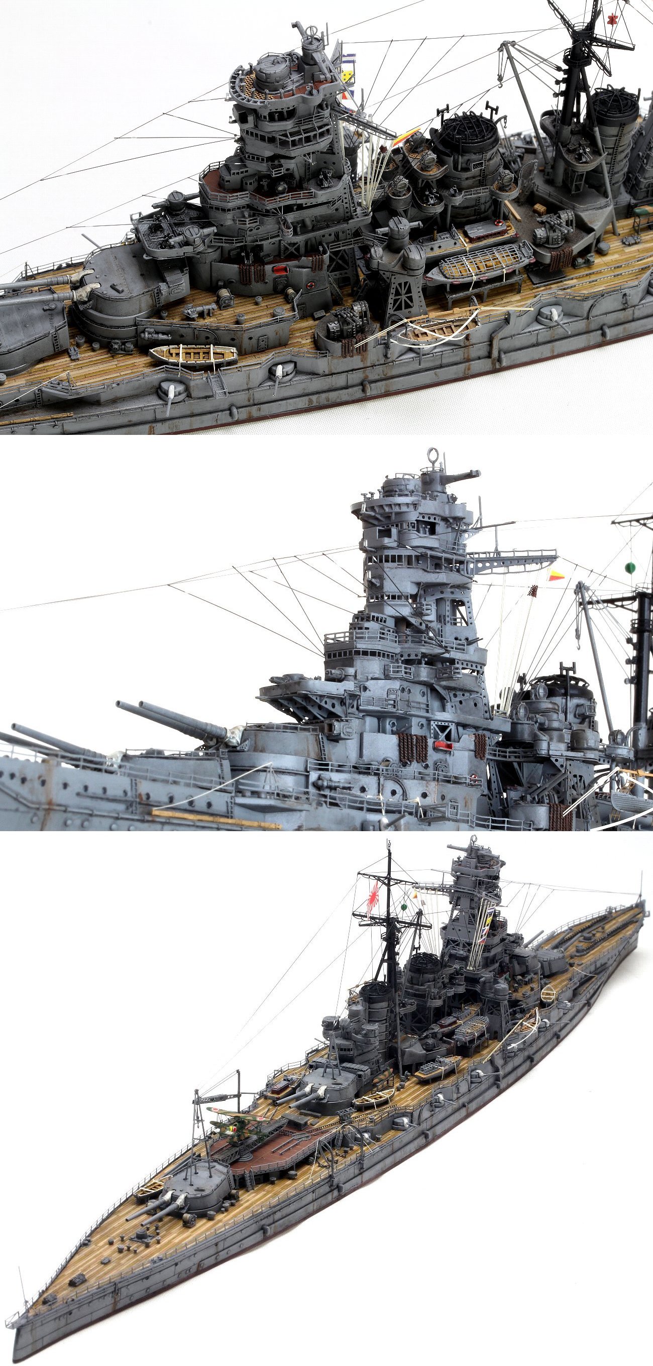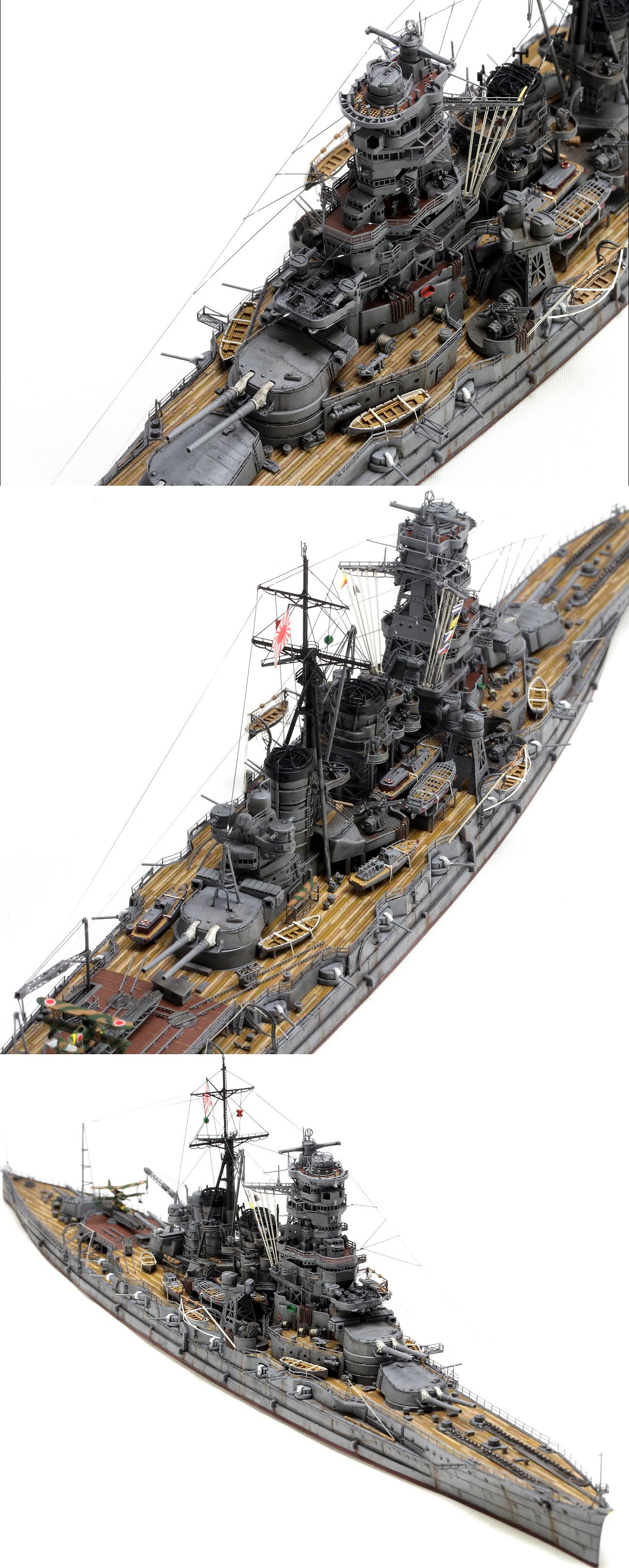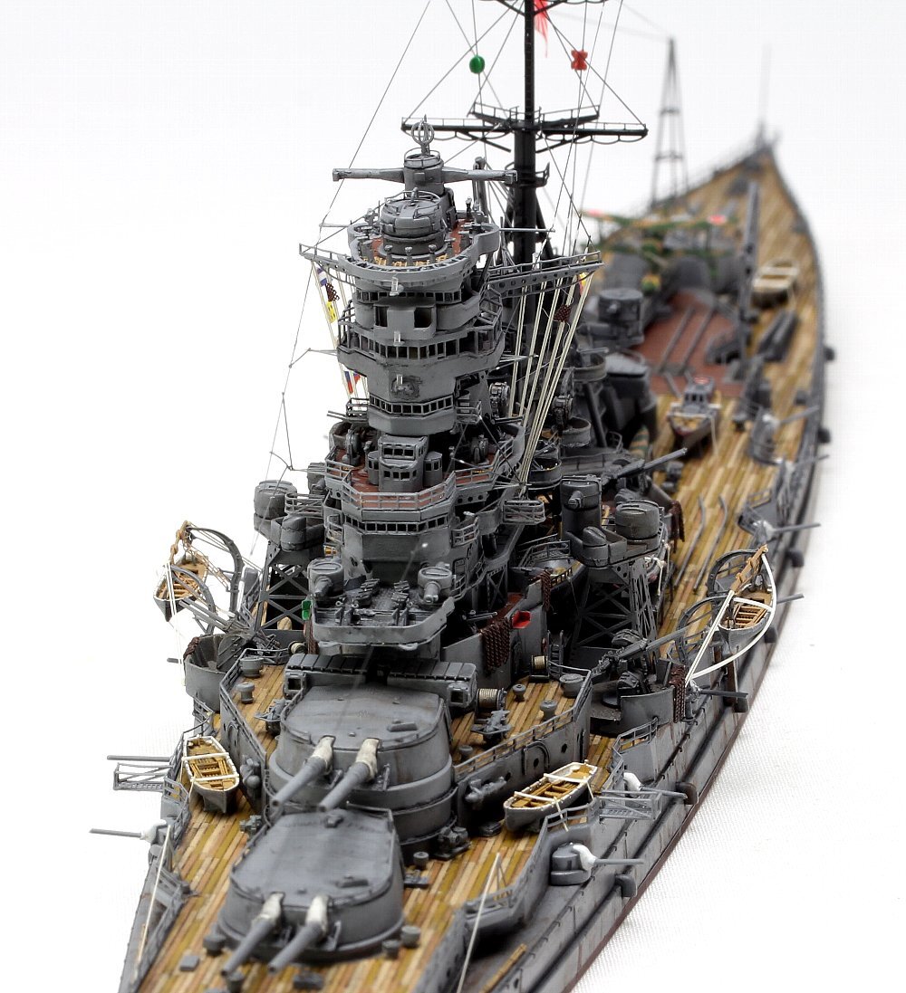 カッターボート、内火艇、12m内火ランチ、ウインチ、ペラベーン、荒天排気筒、探照灯、ライト、リール、機銃箱、望遠鏡は 3Dプリンタ製作によるパーツに変更。