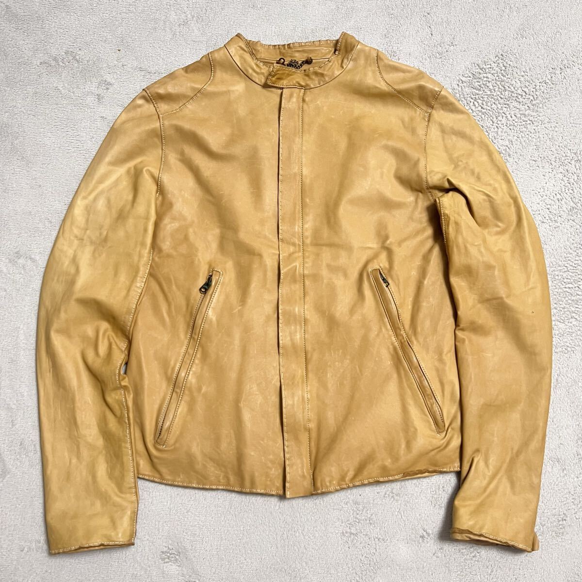 定価106,700★高級 sisii シシ 洗い加工 シングルライダース/レザージャケット 革ジャン ブルゾン サイズS ベージュ 牛革 本革 y2k R-8161