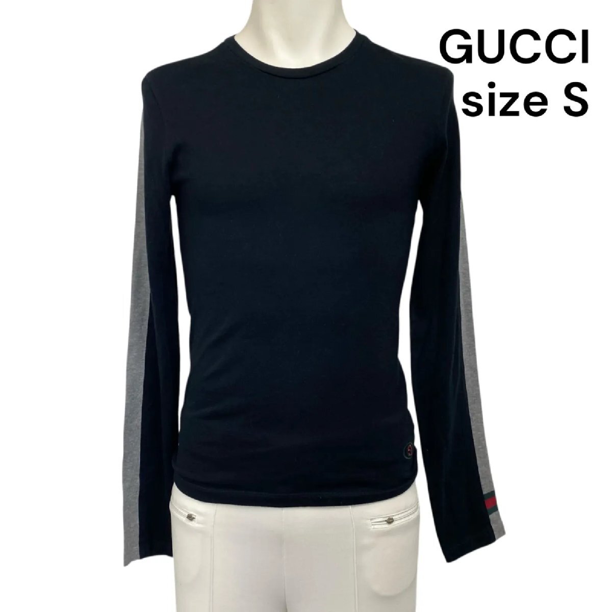 グッチ GUCCI カットソー トップス 長袖 シェリーライン 黒 ブラック コットン100% サイズS メンズ S5U217