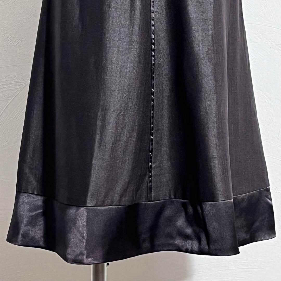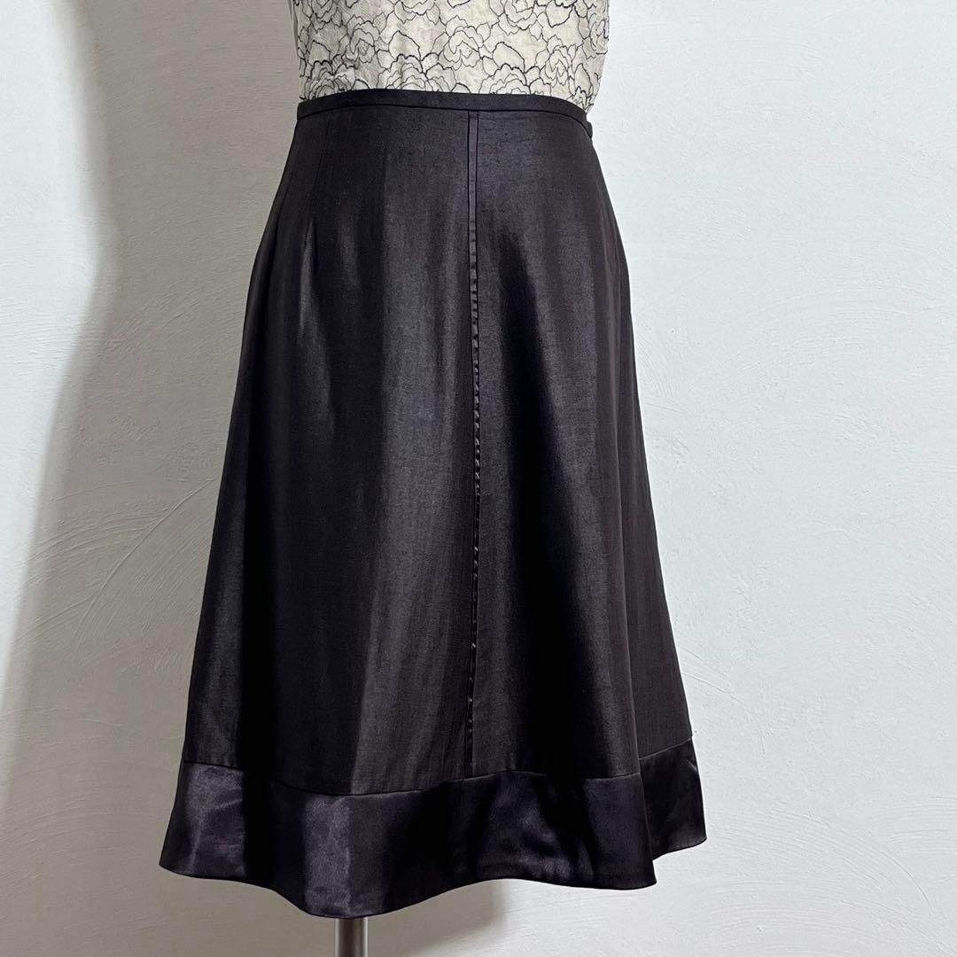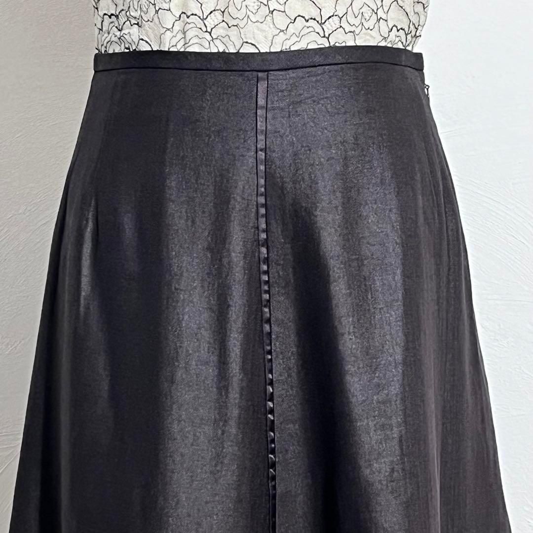 リネン 麻素材風 光沢切替 台形フレアスカート レディース